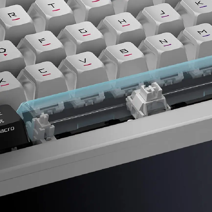 Сумісна з різними перемикачами та ковпачками друкована плата з нижнім розташуванням LED-підсвічування, система з п'яти шарів демпфування, пружинні вставки та пластина з композиту FR4 забезпечують м'який та комфортний відгук.