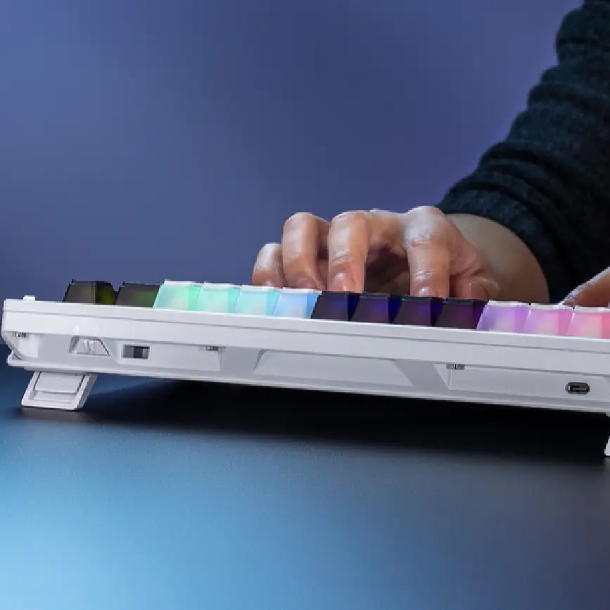 Форм-фактор 75% дозволяє клавіатурі залишатися максимально компактною, зберігаючи при цьому 81 клавішу та повноцінний функціонал. Білий корпус із металевою верхньою панеллю надає пристрою елегантного та сучасного вигляду. Вага в 1600 г (з підставкою для зап'ястя) забезпечує стійкість навіть за найдинамічніших ігрових сесіях.