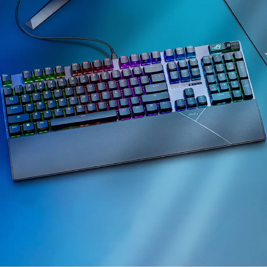 Ключова особливість моделі – механічні перемикачі ROG NX Snow. Це лінійні перемикачі, що забезпечують плавне натискання і блискавичний відгук, що особливо цінно в динамічних шутерах і MOBA-іграх. Підтримка технології Hot Swap дозволяє легко замінювати перемикачі без паяння, а в комплекті йде інструмент ROG 2-в-1 для зняття. Таким чином користувач може налаштувати клавіатуру під свої індивідуальні уподобання.