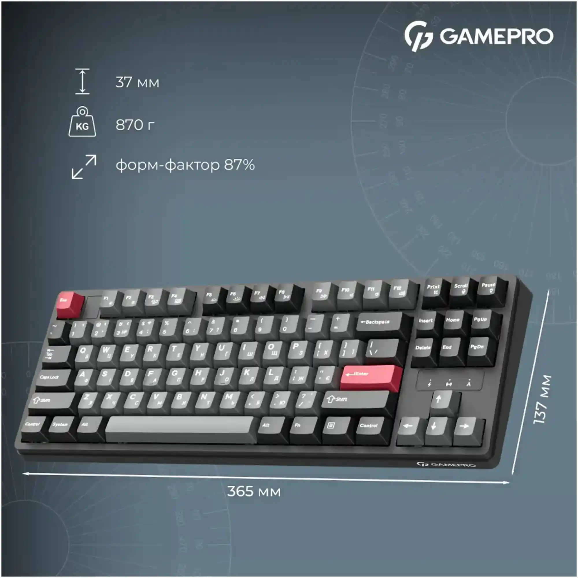 Механічна клавіатура GamePro Asgard Ragnar Black (MK285BK) – сучасний ігровий пристрій, що поєднує компактність і високий рівень продуктивності. Її форм-фактор 80% звільняє робочий простір, створюючи ідеальні умови для динамічних ігрових сесій і повсякденного використання. Строгий чорний корпус підкреслює стиль і надійність, а продумана конструкція забезпечує впевнений контроль у будь-якій ситуації.