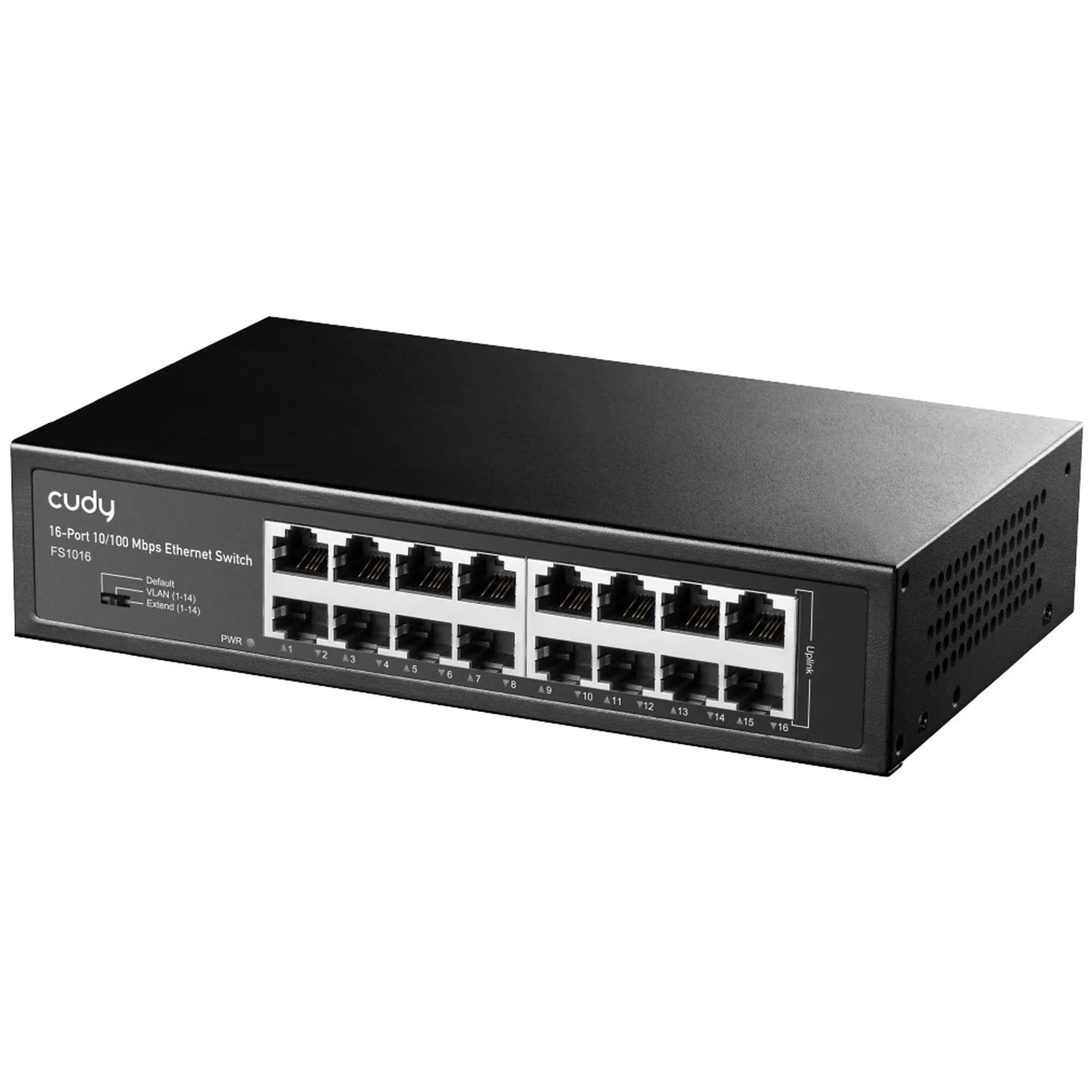 Однією з ключових функцій Cudy FS1016 є підтримка режимів VLAN і Extend, які активуються за допомогою зручного DIP-перемикача. Режим VLAN дозволяє організувати ізольовані мережі для підвищення безпеки та оптимізації трафіку, а режим Extend збільшує дальність передачі даних, що особливо корисно у великих приміщеннях або будівлях зі складним плануванням. Це робить комутатор універсальним інструментом для створення гнучкої та надійної мережевої інфраструктури.