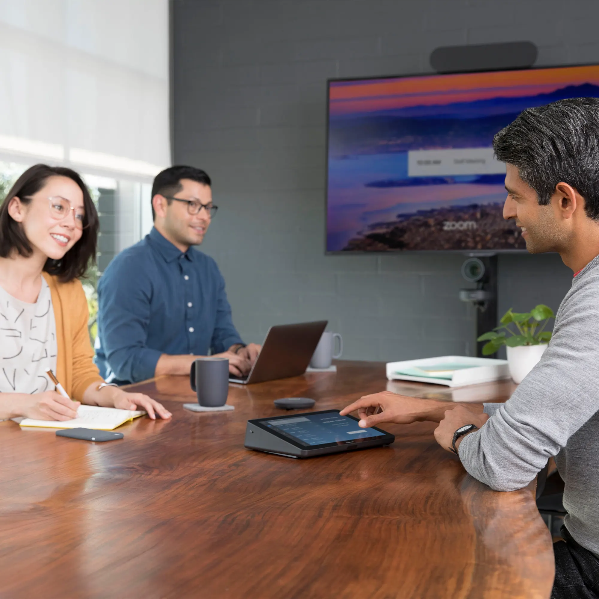 Центральним елементом даного комплекту є сенсорний контролер Tap, що має не тільки витончений дизайн, а й вражаючу функціональність. З Tap ви легко та інтуїтивно керуєте процесом відеоконференції, починаючи з моменту підключення. Він забезпечує швидкий та безпроблемний доступ до відеоконференцій через сервіс Zoom. Забудьте про складні налаштування – Tap робить процес участі у відеозустрічах максимально простим.