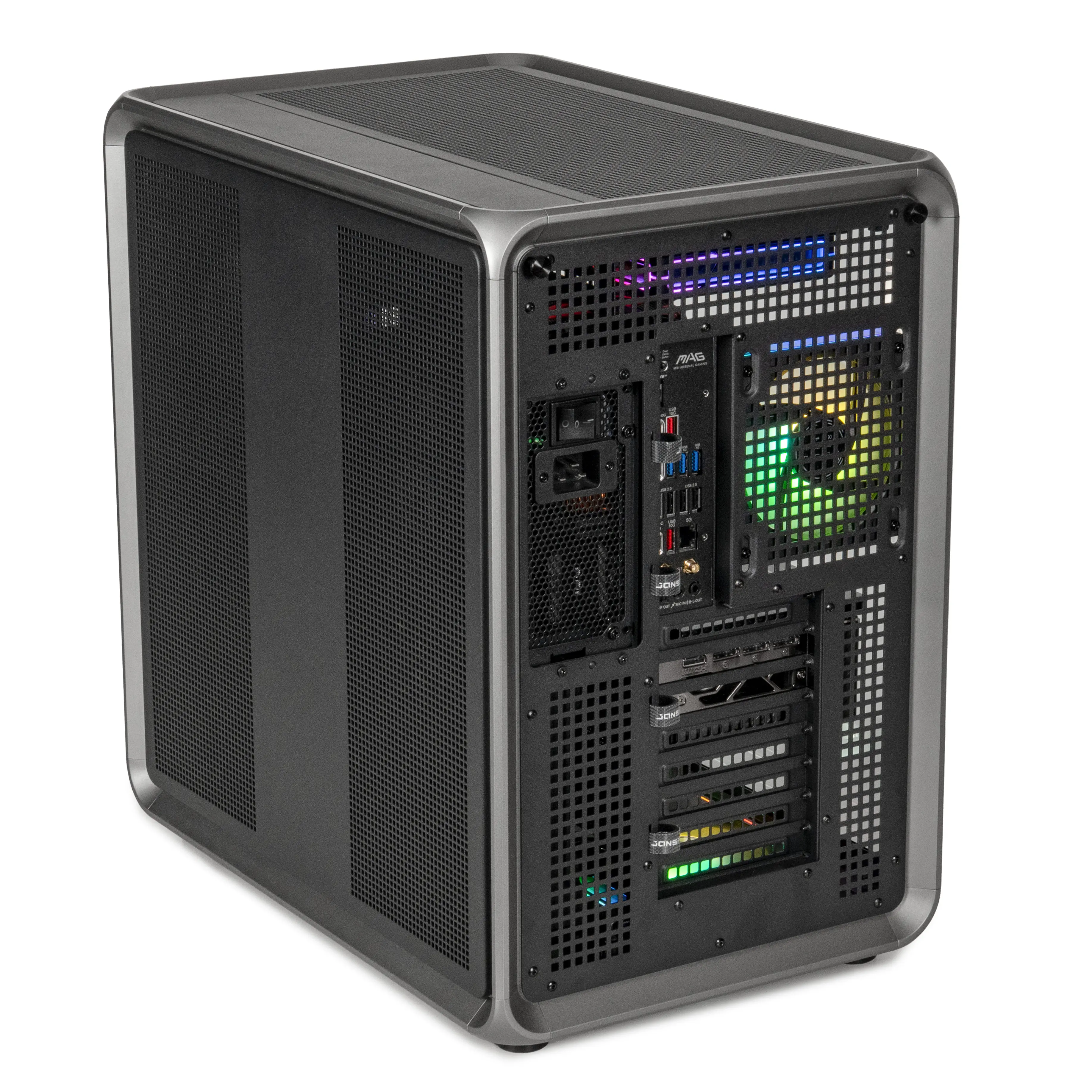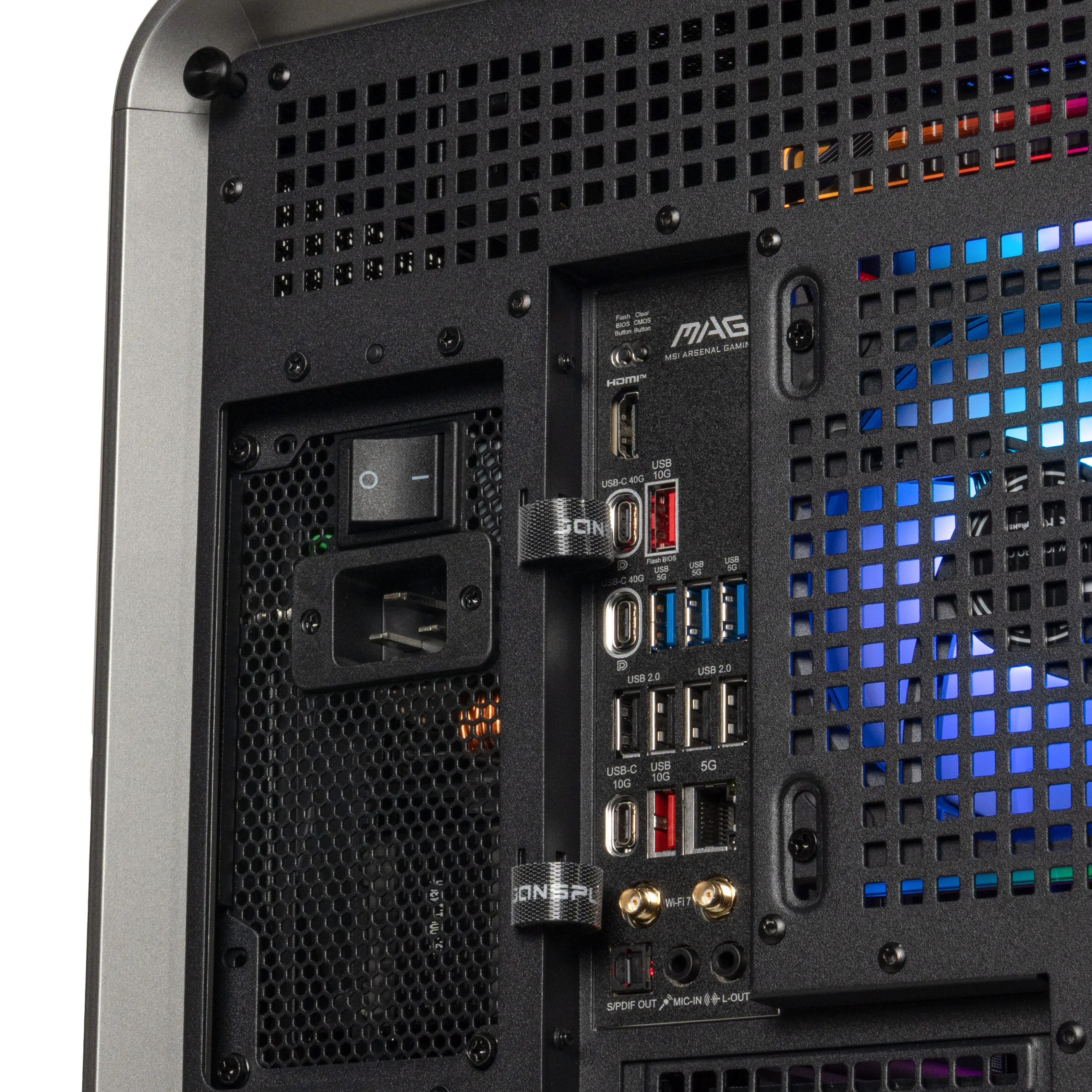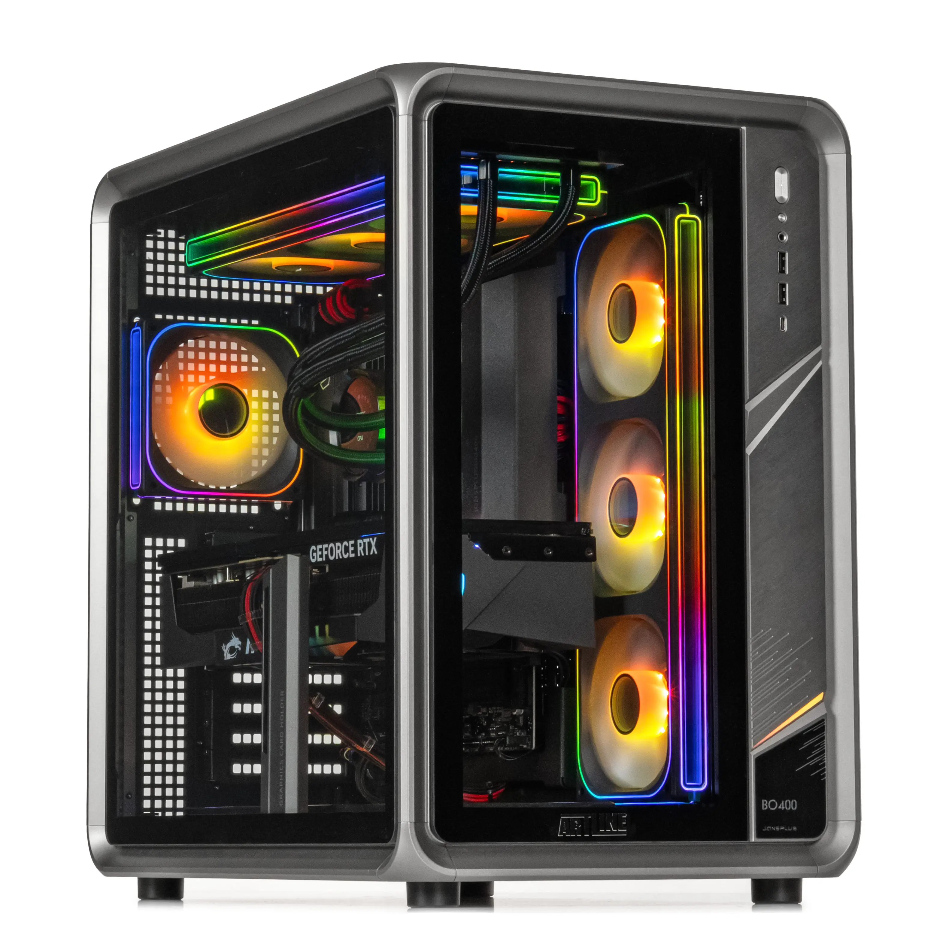 Корпус Jonsbo BO400 із загартованим склом та RGB-підсвічуванням не лише підкреслює статус пристрою, а й забезпечує ефективне охолодження: у системі встановлені десять RGB-вентиляторів та потужний блок живлення на 1600 Вт із сертифікатом 80+ Gold. Доповнюють картину сучасні інтерфейси: USB4, Wi-Fi 7, Bluetooth 5.4, високошвидкісна мережна карта 5GbE та повний спектр аудіо- та відеовиходів.