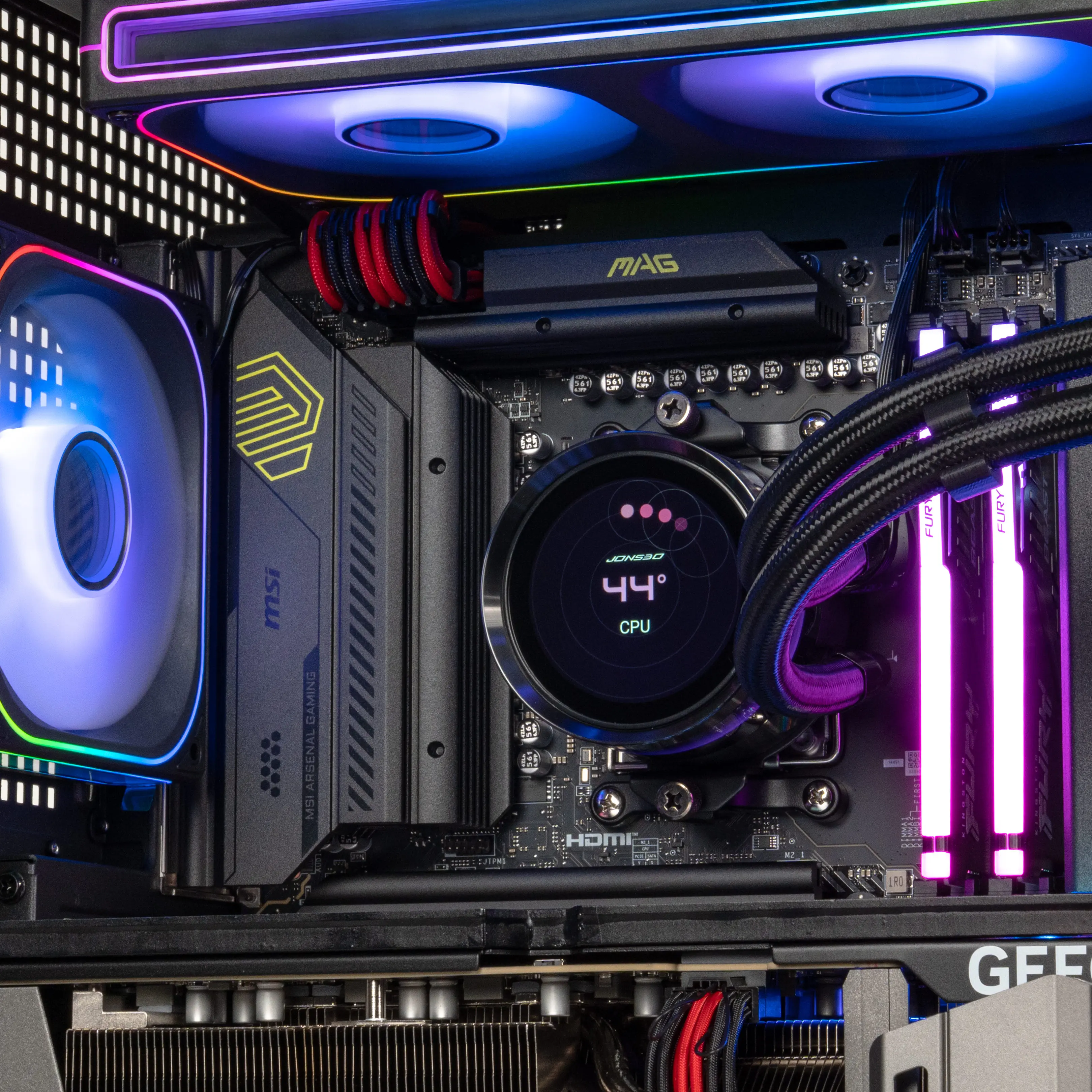 В основі системи лежить 8-ядерний процесор AMD Ryzen™ 7 9800X3D із тактовою частотою до 5.2 ГГц. Завдяки розблокованому множнику та інноваційній системі рідинного охолодження EKWB Water Cooling Premium, користувач отримує стабільну роботу та запас для екстремальних навантажень. Цей процесор розкриває свій потенціал в іграх, моделюванні та багатопотокових завданнях, забезпечуючи плавність та високу швидкість відгуку.