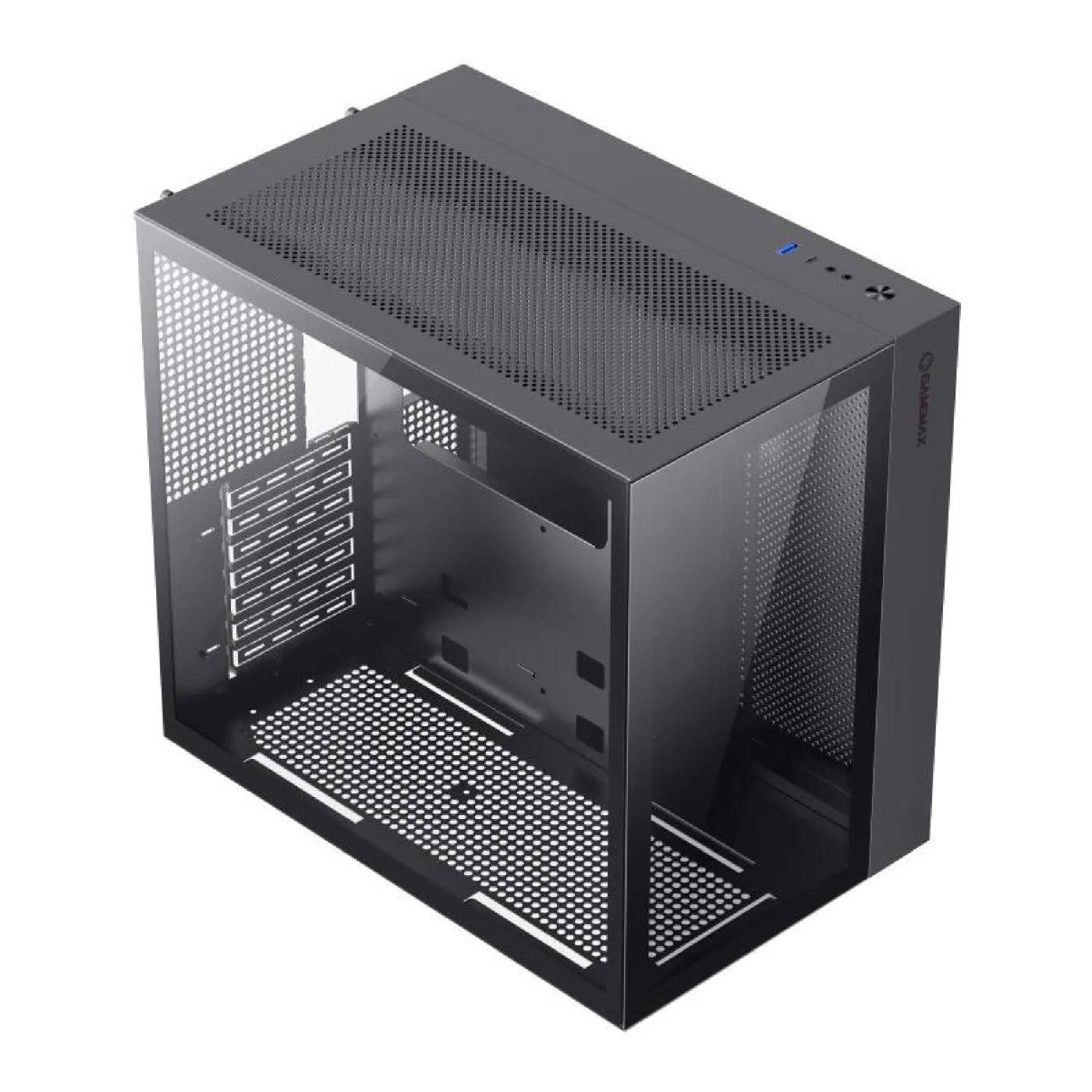 Gamemax Infinity BK привертає увагу своїм елегантним дизайном та високоякісними матеріалами. Передня панель корпусу виконана з чорного акрилового скла з ефектом скляного дзеркала, що надає йому стильного та сучасного вигляду. Ця панель не тільки підкреслює зовнішній вигляд вашого ПК, але й дозволяє спостерігати за внутрішнім освітленням і компонентами. Чорний колір та мінімалістичний стиль роблять цей корпус ідеальним доповненням до будь-якого робочого простору.