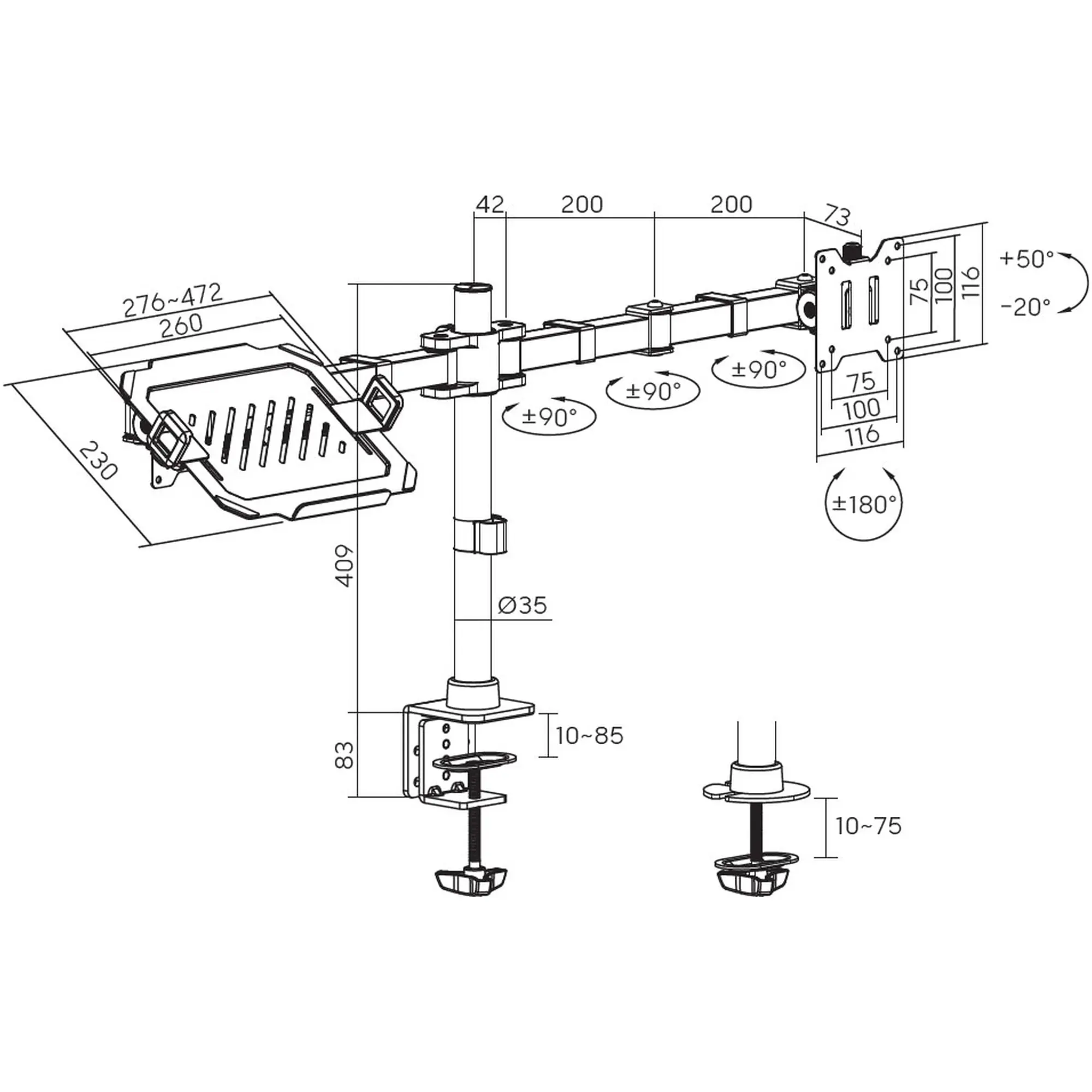 OfficePro MA113B забезпечує широкі можливості регулювання: монітор можна нахиляти, повертати та налаштовувати за висотою, а платформа для ноутбука пропонує надійну фіксацію та зручний кут огляду. Завдяки плавним механізмам користувач може швидко підібрати оптимальне положення пристроїв, зменшуючи навантаження на шию, спину та очі. Міцна конструкція витримує щоденні навантаження й забезпечує стабільну підтримку навіть для важких моделей.