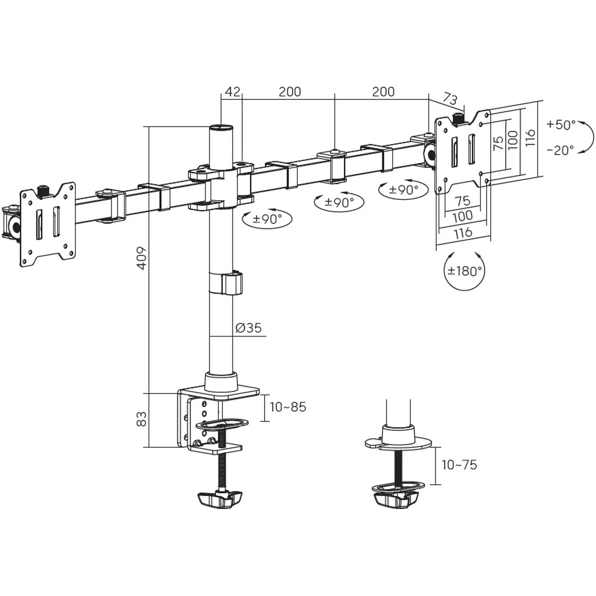 - Макс. висота кронштейна