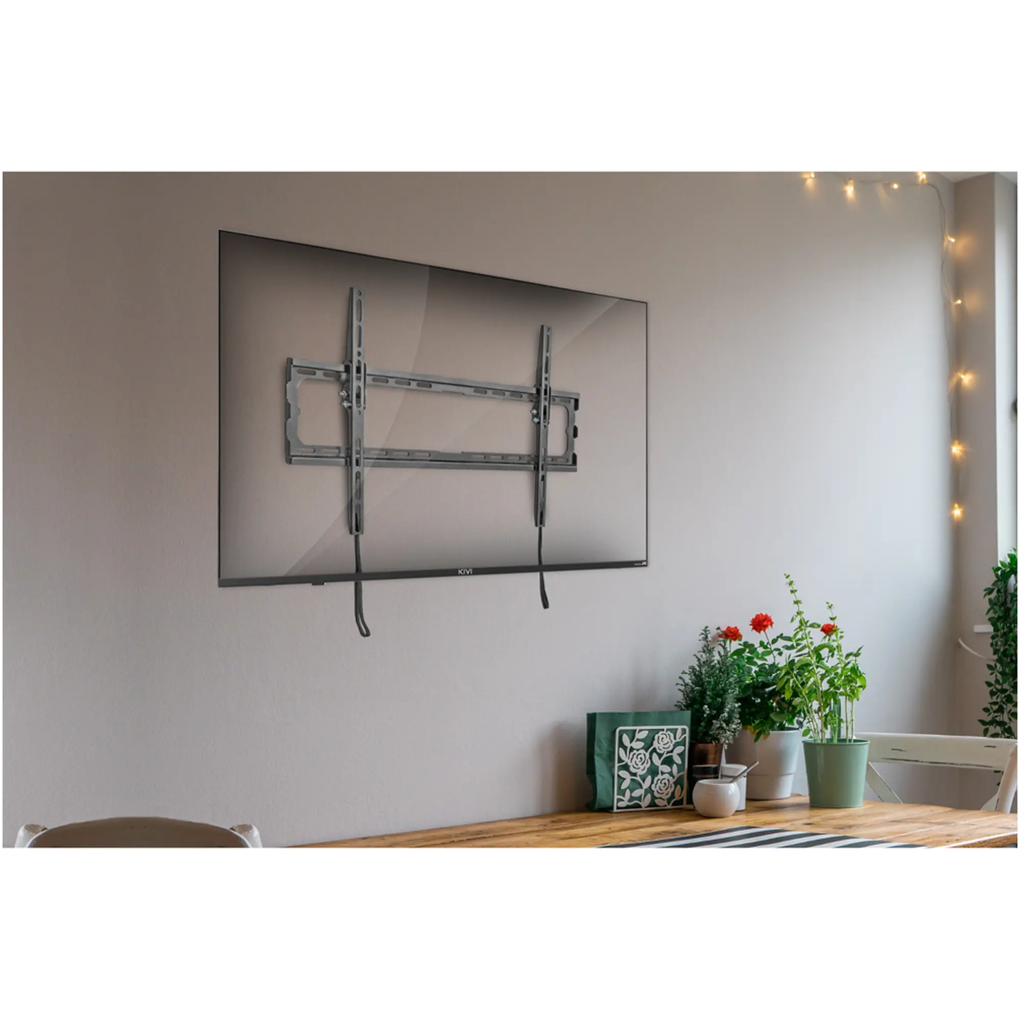 Кріплення для телевізора Kivi Basic-44T — це міцне та сучасне настінне рішення, створене для безпечного й естетичного встановлення телевізорів із діагоналлю від 32 до 55 дюймів. Завдяки універсальному стандарту кріплення VESA до 400×400 мм, кронштейн сумісний із більшістю моделей відомих брендів. Надійна сталева конструкція витримує навантаження до 45 кг, забезпечуючи впевнену фіксацію телевізора на стіні. Мінімальна відстань від екрана до стіни — лише близько 20 мм, що надає встановленню акуратного та стильного вигляду, який гармонійно поєднується з будь-яким інтер’єром.