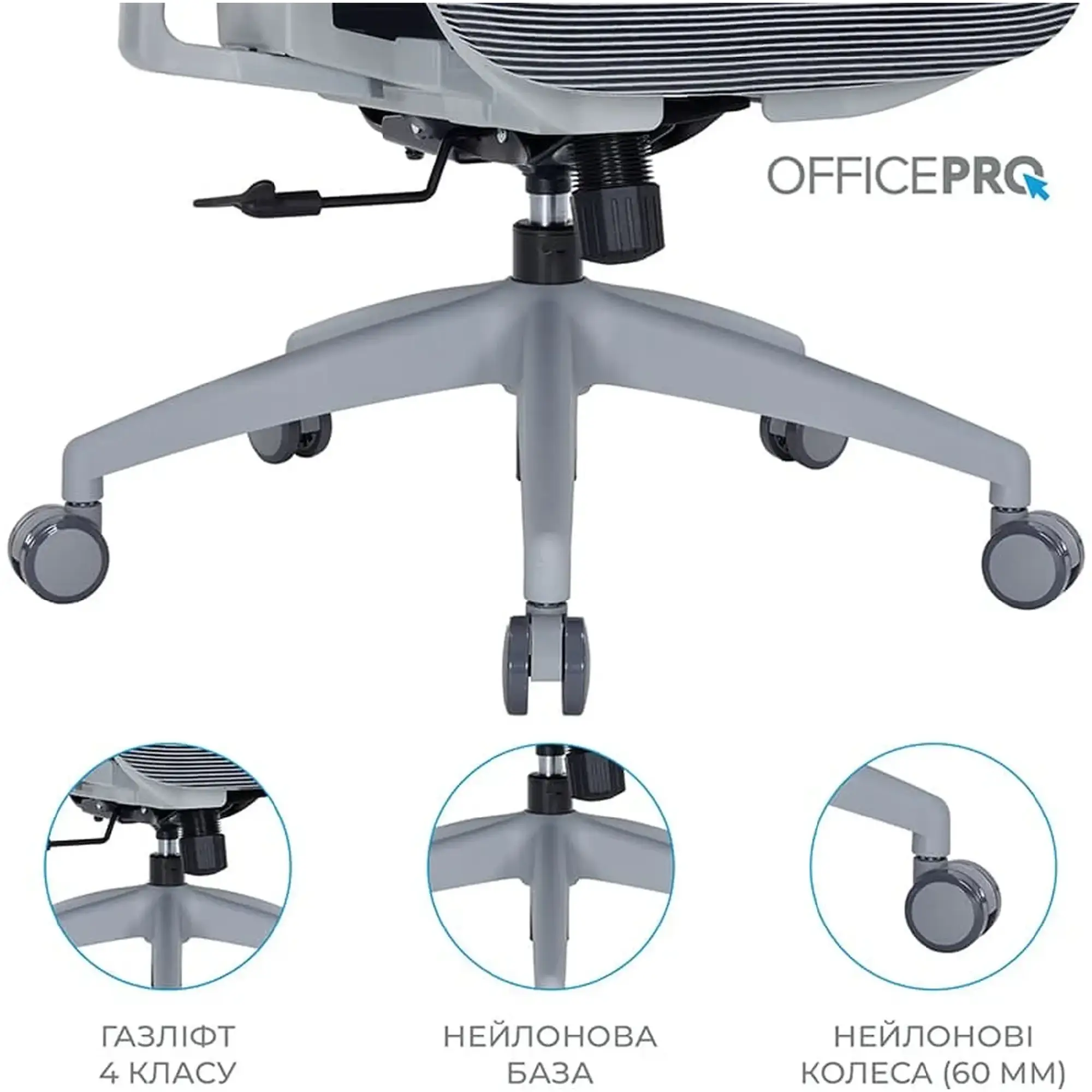 Офісне крісло Officepro Atlas OC630-G-DG-DG Gray/Dark Gray – це сучасне рішення для комфортної роботи протягом усього дня. Його ергономічна конструкція продумана до дрібниць: висока спинка та регульований підголівник забезпечують оптимальну підтримку шиї та плечей, зменшуючи втому під час тривалого сидіння. Дихаюча поліестрова сітка на спинці сприяє циркуляції повітря, підтримуючи відчуття прохолоди навіть у спеку, а міцна нейлонова база гарантує стабільність і довговічність конструкції.