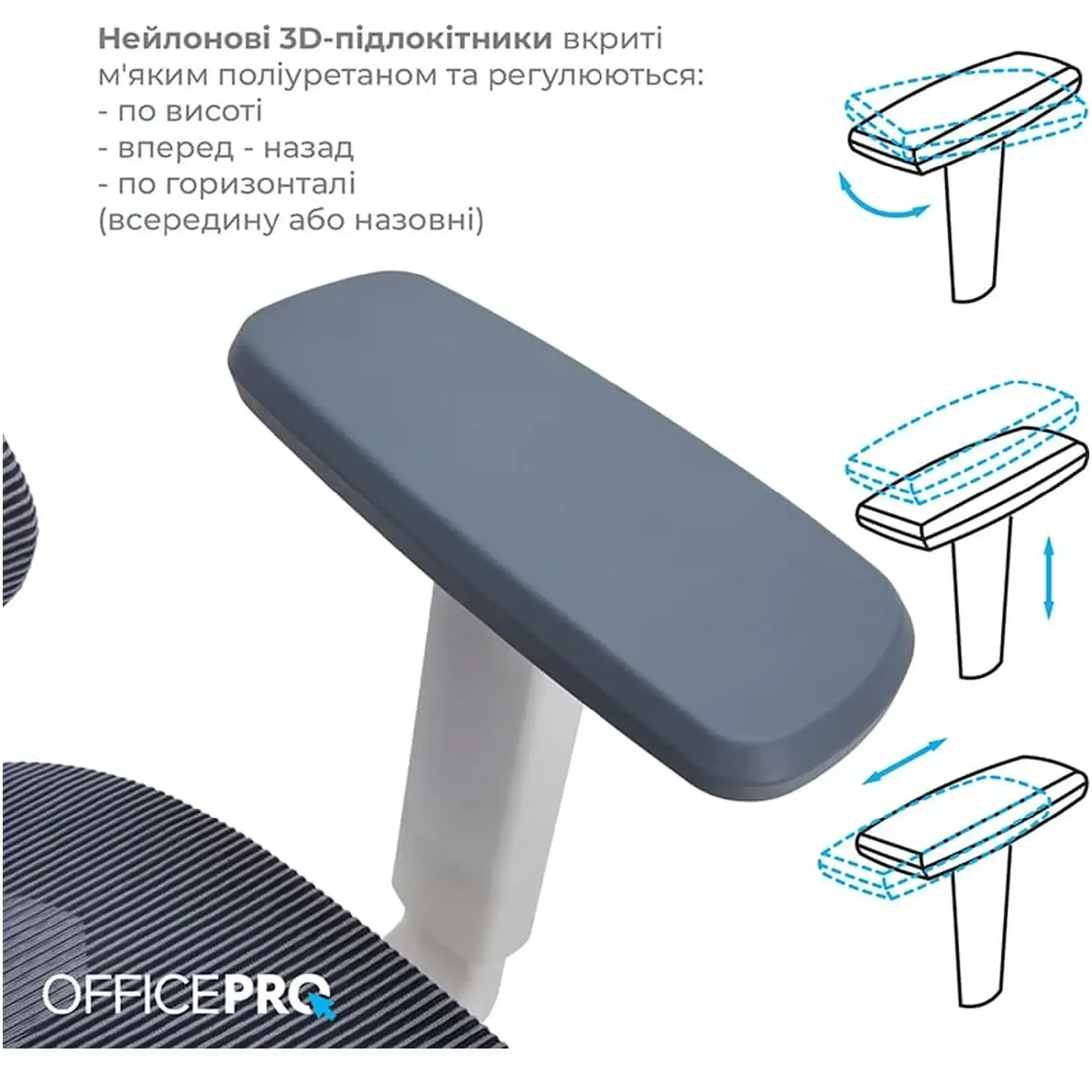 4D підлокітники дозволяють регулювати висоту, ширину, кут нахилу та переміщення вперед-назад для максимального комфорту. 2D підлокітники забезпечують регулювання висоти та повороту вбік. 3D підлокітники дозволяють налаштовувати висоту, кут нахилу та положення вперед-назад. 5D підлокітники пропонують найширший діапазон регулювань: висота, ширина, нахил, переміщення вперед-назад і поворот у різні сторони.