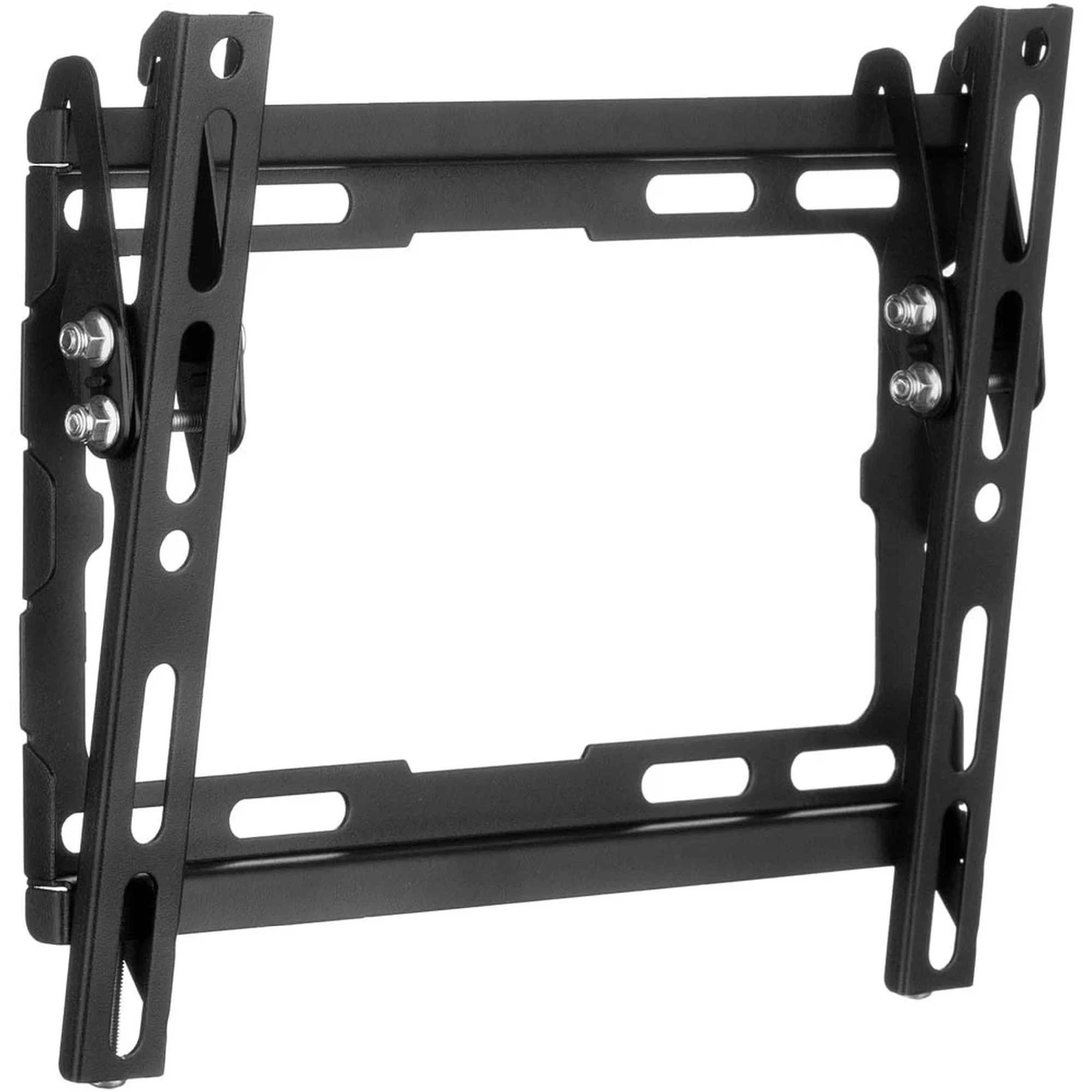 Модель виконана з міцного металу та пофарбована в елегантний чорний колір, що гармонійно вписується в будь-який інтер'єр. Нахилена конструкція з регулюванням кута нахилу до -8° дозволяє комфортно налаштувати положення екрану, зменшуючи відблиски та створюючи максимально зручні умови для перегляду. Відступ від стіни складає всього 20 мм, що робить кронштейн компактним та естетичним рішенням.