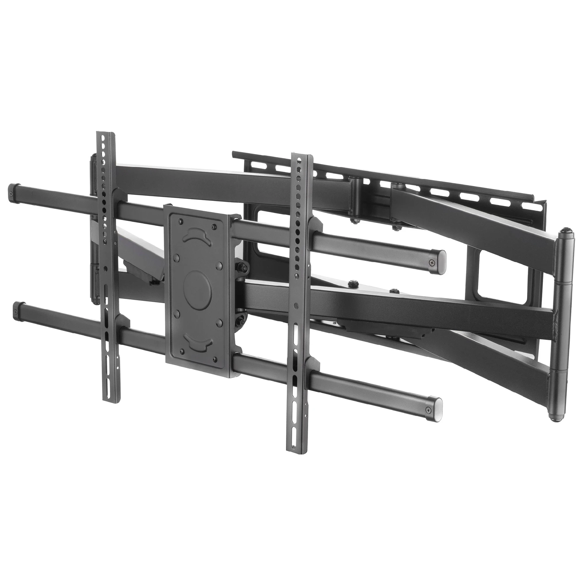 Конструкція виконана з міцної сталі, що витримує навантаження до 80 кг, що гарантує довговічність та безпеку експлуатації. Сумісність із популярними стандартами VESA (від 200х200 до 800х400) робить кронштейн універсальним рішенням для більшості сучасних телевізорів. Додатковою перевагою є продумана система прокладання кабелів, яка допомагає підтримувати акуратний зовнішній вигляд та позбавляє зайвих проводів на увазі.
