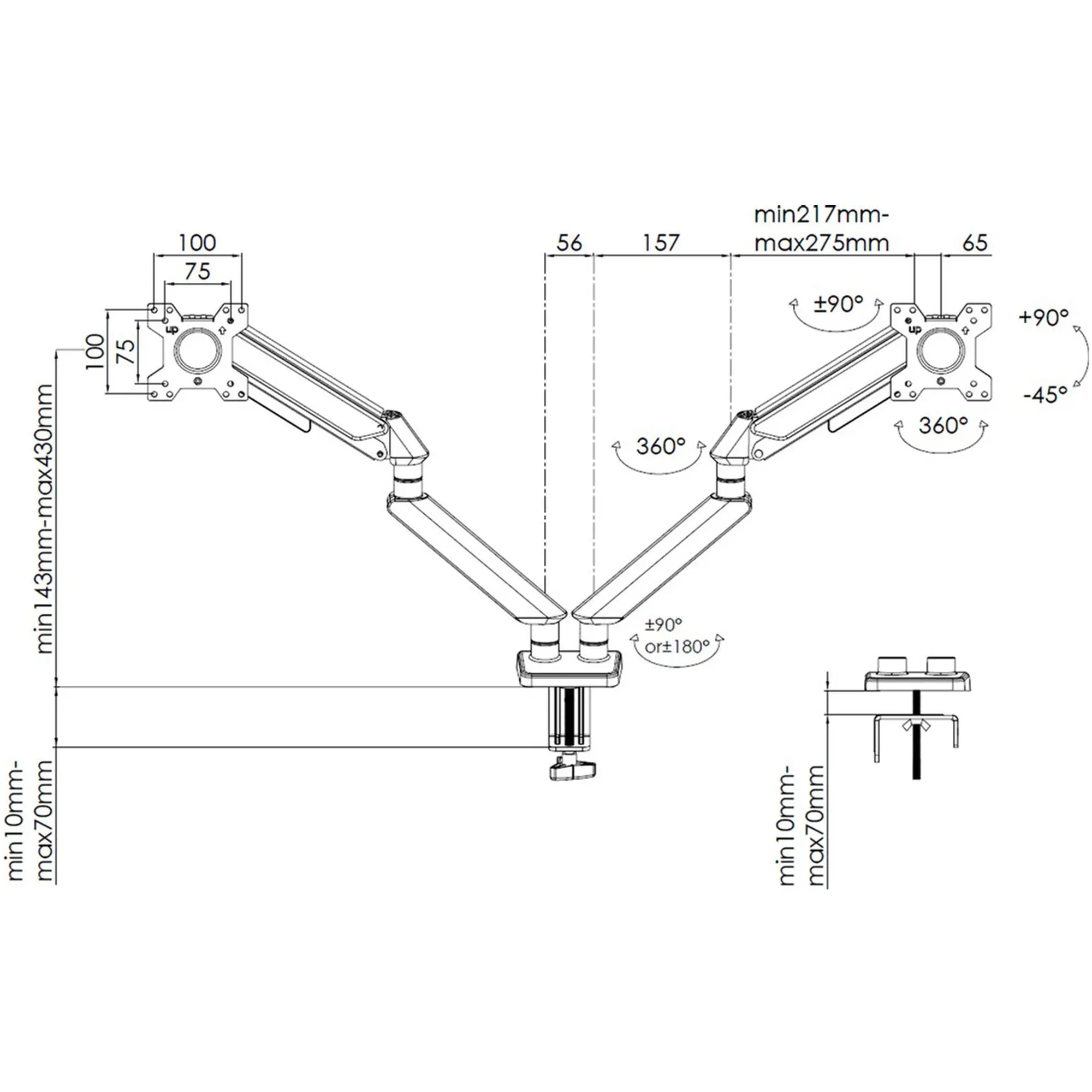 Anda Seat Stealth II Duo Black/White (AD-W-A6D-2S-BW) підтримує стандарти VESA, сумісні з більшістю сучасних моніторів, і розраховане на встановлення двох екранів діагоналлю 17–32 дюйми. Механізми регулювання дають змогу змінювати висоту, кут нахилу, глибину та поворот кожного монітора, забезпечуючи точне налаштування під індивідуальні робочі завдання. Така гнучкість допомагає створити ергономічне робоче місце, зменшує навантаження на очі та шию і підвищує продуктивність користувача.
