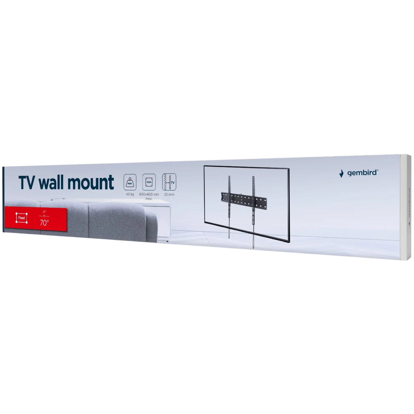 Кронштейн для телевізора Gembird WM-70F-01 — це міцне стаціонарне настінне рішення, розроблене для пристроїв із діагоналлю від 37 до 70 дюймів, з максимальною вагою до 40 кг. Конструкція з товстої сталі з порошковим покриттям забезпечує максимальну надійність, а мінімальна відстань до стіни — лише 25 мм — створює ефект «плаваючого» екрану та максимально охайний вигляд.