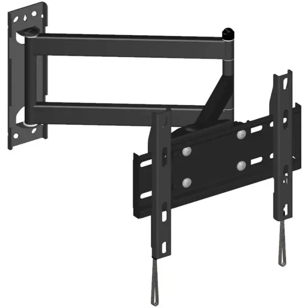 Настінний спосіб встановлення робить цей кронштейн практичним вибором для раціонального використання простору. Конструкція фіксує екран на відстані 93 мм від стіни, зберігаючи акуратний зовнішній вигляд зони розміщення та не перевантажуючи інтер’єр зайвими елементами. Чотири ступені свободи забезпечують високу гнучкість регулювання, даючи змогу адаптувати положення телевізора або монітора під конкретні умови приміщення.