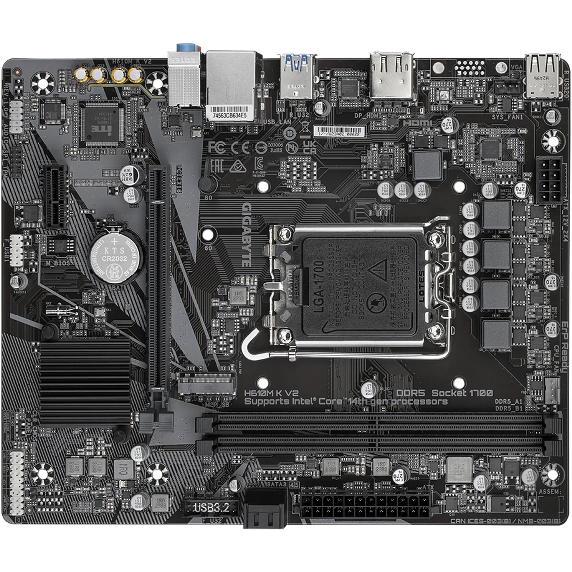 Материнська плата GIGABYTE H610M K V2 — це надійне та сучасне рішення для складання продуктивних систем на базі процесорів Intel. Оснащена сокетом LGA1700, вона сумісна із процесорами Intel® Core™ 14-го, 13-го та 12-го поколінь, включаючи Pentium® Gold та Celeron®. Така універсальність робить її чудовим вибором для створення як робочих, так і домашніх ПК, забезпечуючи оптимальний баланс між потужністю та стабільністю.