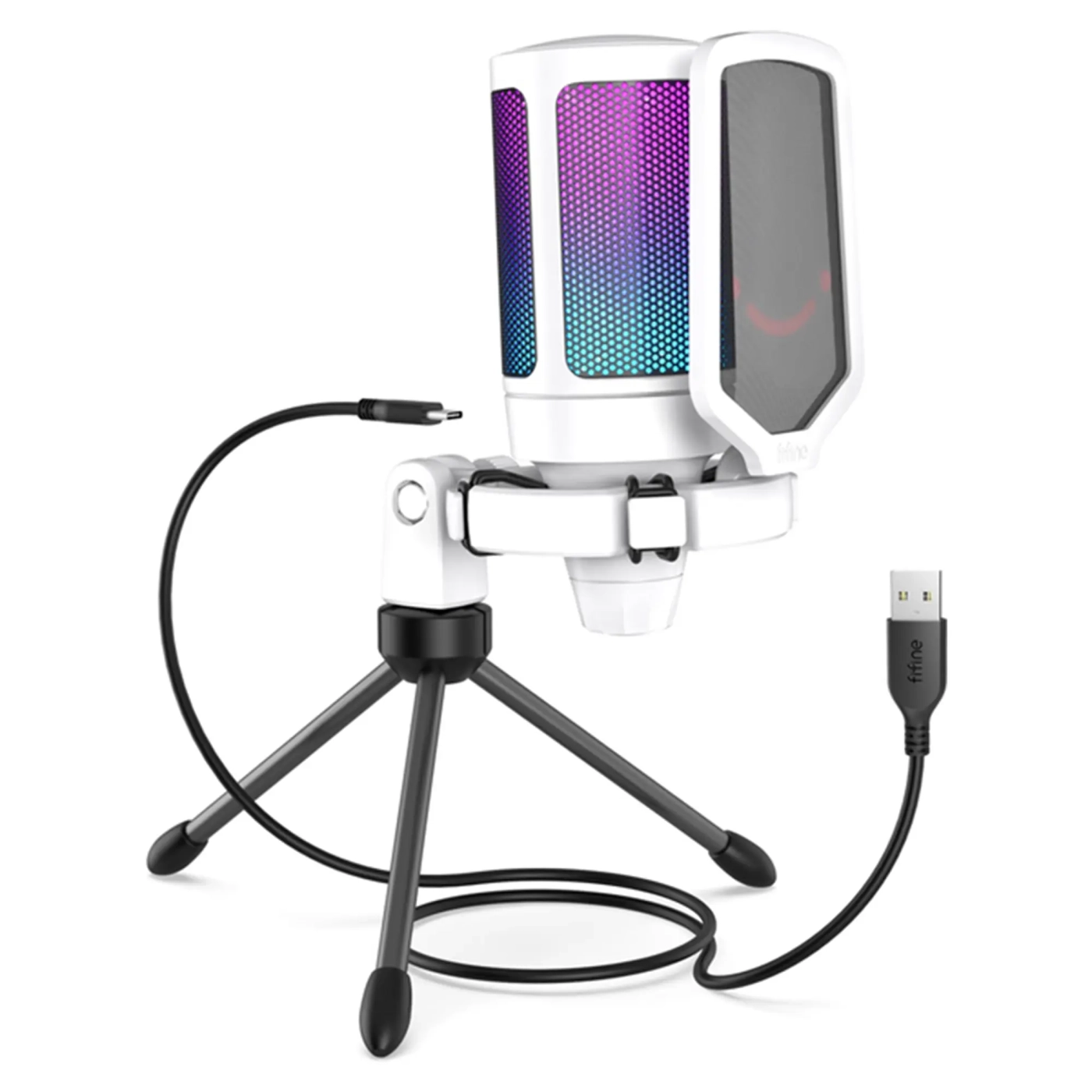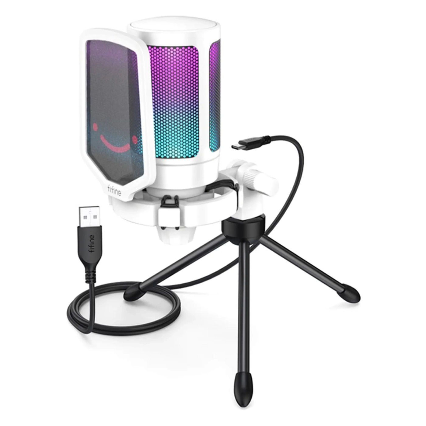 Мікрофон Fifine RGB AMPLIGAME (A6VW) – ідеальний вибір для геймерів, стрімерів та творців контенту, які цінують якість звуку та стильний дизайн. Цей мікрофон забезпечує чудове звучання завдяки чутливій конденсаторній капсулі, яка захоплює кожну деталь вашого голосу. Глибокі низькі та чисті високі частоти дозволять вам насолодитися всіма нюансами звуку, будь то ігрова комунікація, подкасти або записи. Завдяки зручній тренозі, мікрофон можна легко встановити на робочому столі, забезпечуючи стабільність та комфорт під час використання. Вражаюче RGB-підсвічування додає стильний акцент вашому сетапу, дозволяючи обрати з безлічі кольорових варіантів та режимів свічення.