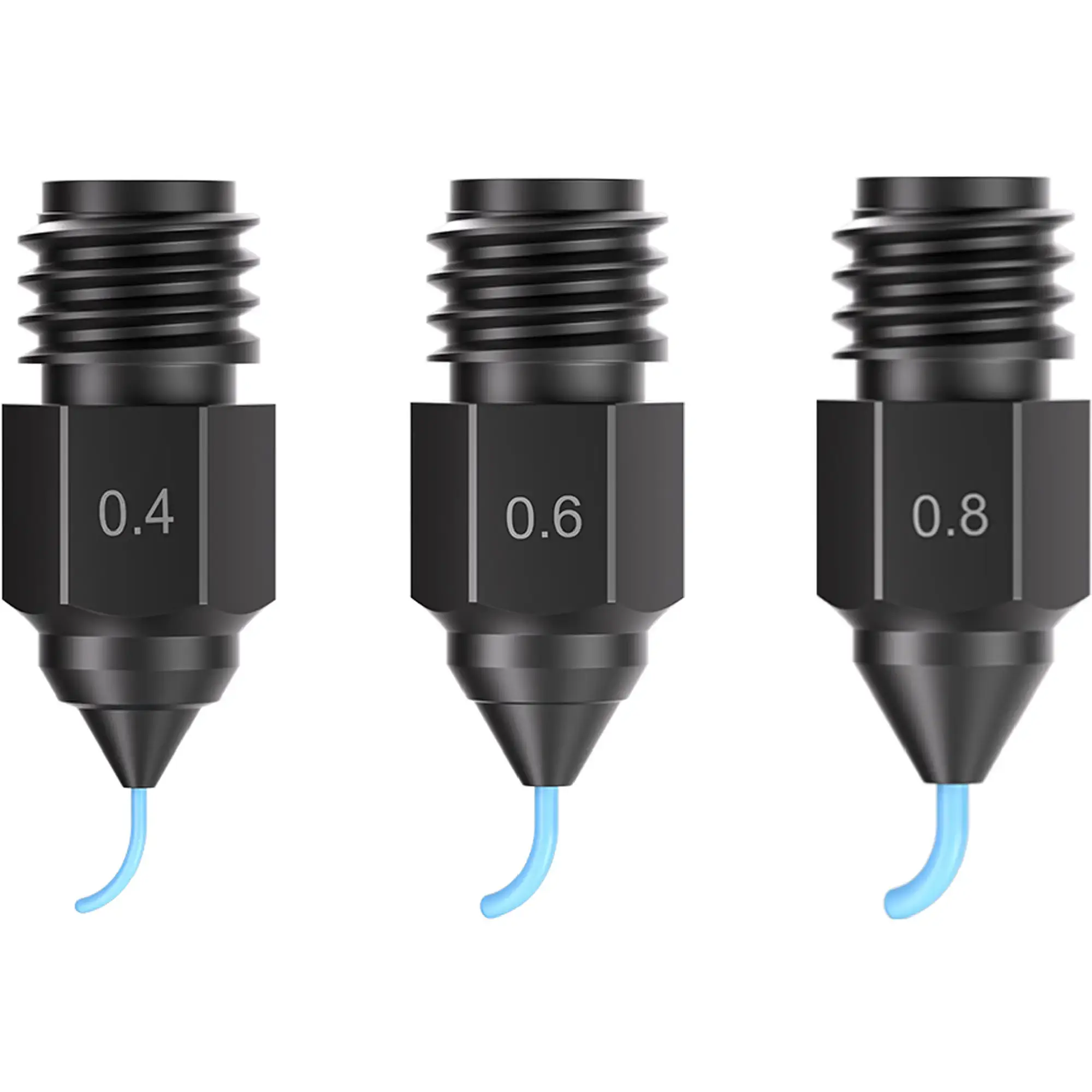 - Твердість за Моосом: 6 | Висока термостійкість: 500℃ | Теплопровідність: 330 W/m·k | Шорсткість внутрішньої стінки: <0.4 | Сумісні витратні матеріали: Hyper PLA/PLA/PETG/TPU95A/ABS/ ASA/PLA-CF/PA/PLA-Silk і більшість інших FDM-матеріалів