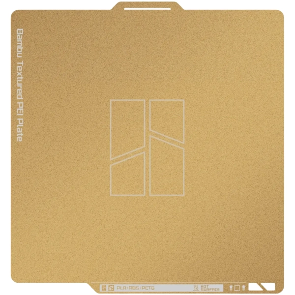 Основа виробу поєднує магнітну пластину з нержавіючої сталі та порошкове PEI-покриття. Таке виконання вдало об’єднує міцність, гнучкість і стійкість до регулярної експлуатації. Текстурована поверхня PEI сприяє якісному зчепленню моделі з робочою зоною під час друку, а після завершення процесу спрощує зняття готового виробу. Золотий колір покриття підкреслює сучасний і професійний характер аксесуара.
