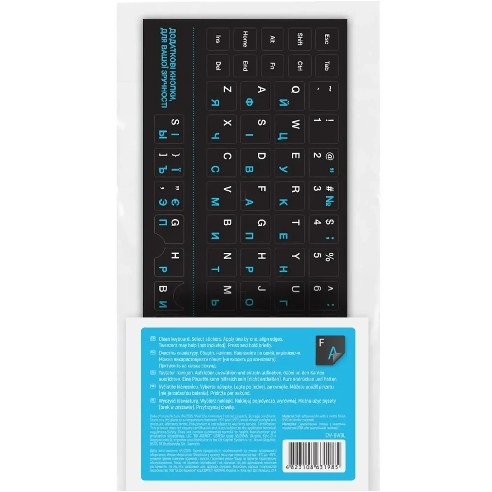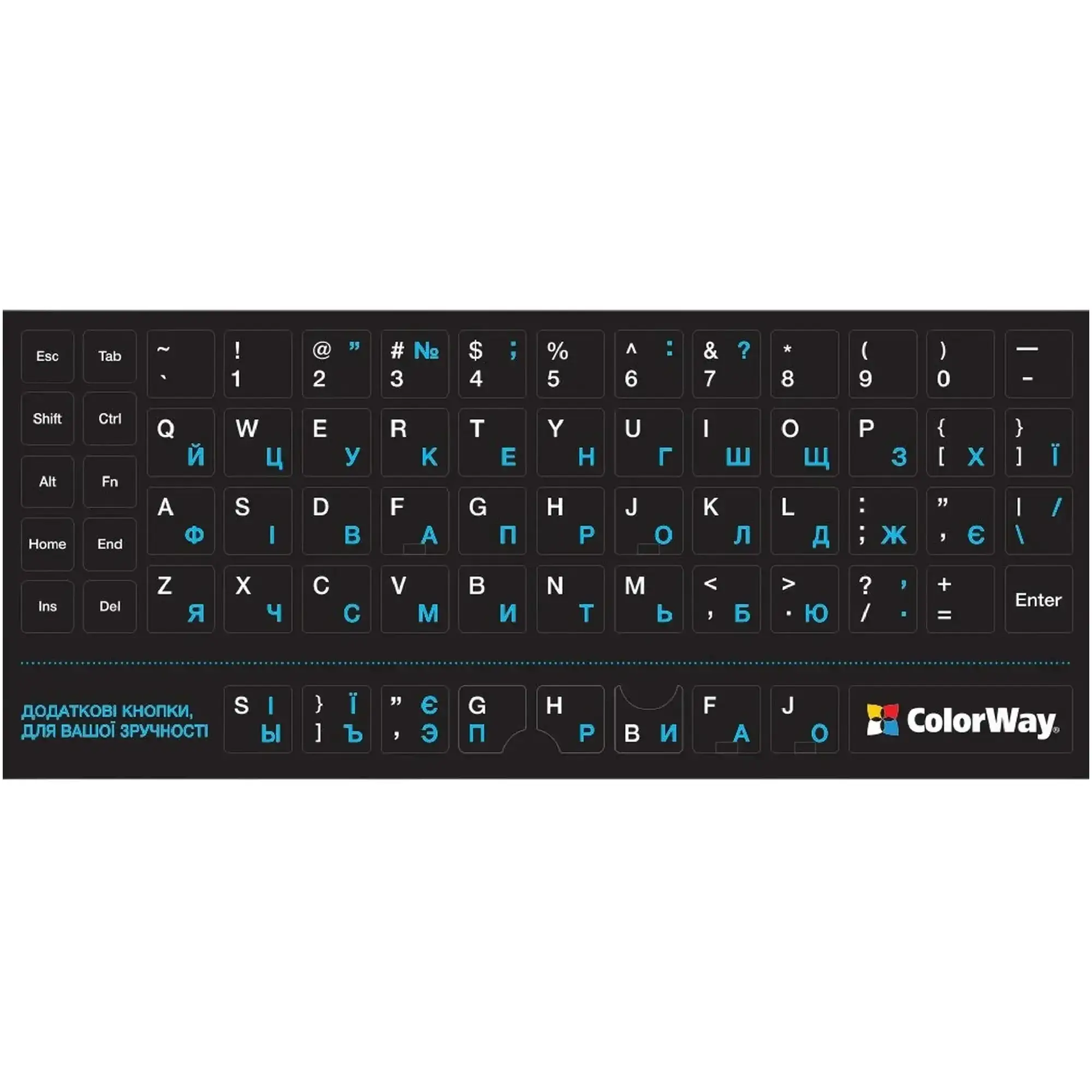Наліпки на клавіатуру СolorWaу непрозора чорна, біло-синя (CW-BWBL)