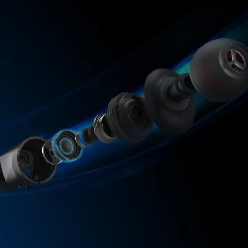 Ергономіка тут продумана до найдрібніших деталей: динаміки з рідкого силіконового каучуку (LSR) гарантують щільну посадку і чудову шумоізоляцію. Насадки і кріплення з того ж матеріалу мають ультрам'яку текстуру, що робить їх незамінними під час тривалих ігрових сесій. Конструкція корпусу нахилена і доповнена фіксуючим елементом, який надійно утримує навушник у вусі навіть під час активних рухів. Система мікрофонів з технологією придушення сторонніх шумів дозволяє забезпечити чисту передачу голосу — будь то внутрішньоігровий чат, дзвінок або конференція. Це особливо актуально для професійних стрімерів і кіберспортсменів, де чіткість комунікації відіграє ключову роль.