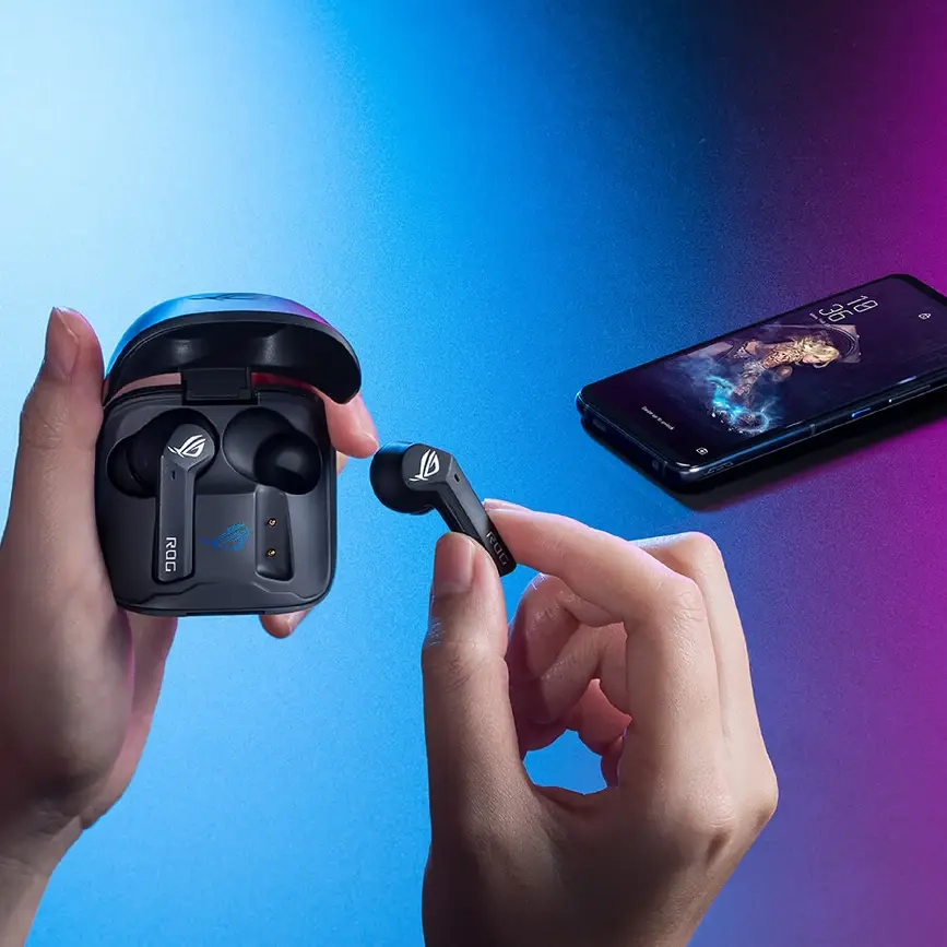 Ігрова гарнітура ROG Cetra True Wireless працює через бездротове з'єднання з мінімальною затримкою, що забезпечує точний збіг аудіо та відеоряду. Модель оснащена системою активного шумоподавлення, вбудованим еквалайзером та підтримує бездротову зарядку. За якісне та деталізоване звучання відповідають оптимізовані 10-мм динаміки ASUS Essence, а захист корпусу за стандартом IPX4 гарантує стійкість до бризок. Сукупний час автономної роботи сягає 27 годин