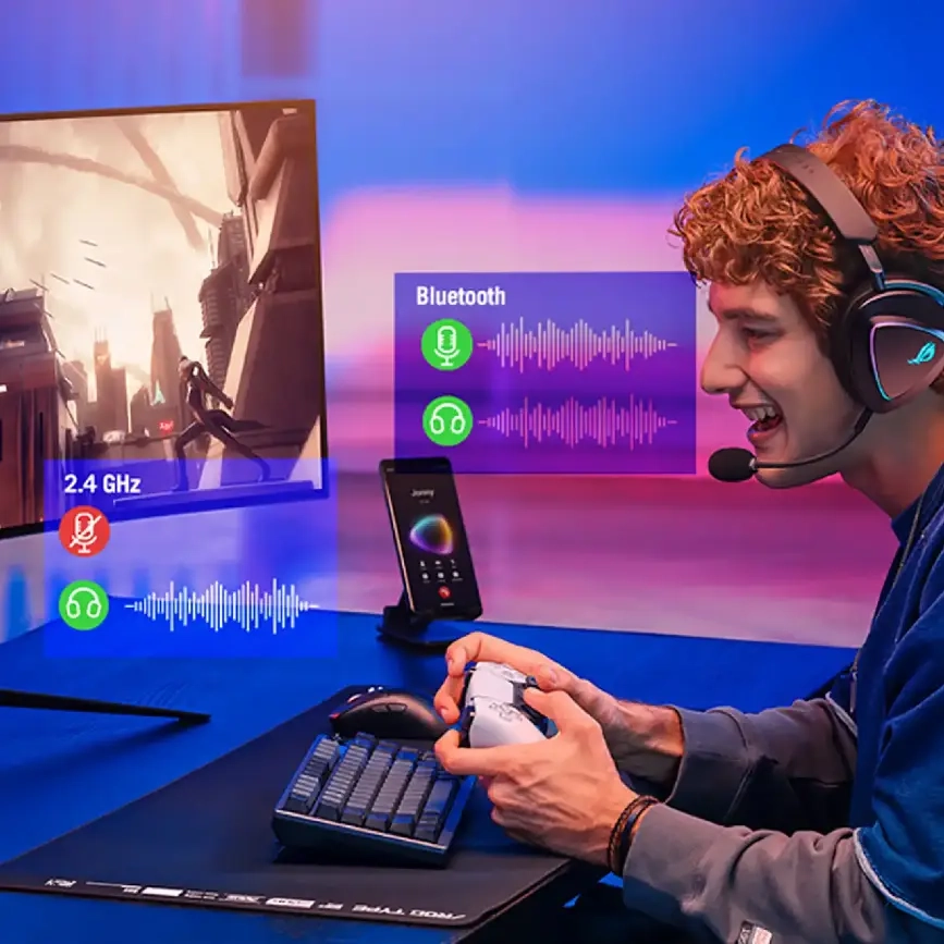 Навушники підтримують Bluetooth, фірмову бездротову технологію ROG SpeedNova 2,4 ГГц з мінімальною затримкою, а також дротове підключення через роз'єм 3,5 мм. Такий набір забезпечує повну сумісність із ПК, Mac, PlayStation® 4/5, Nintendo Switch™, Xbox One, Xbox Series X|S* та мобільними пристроями.