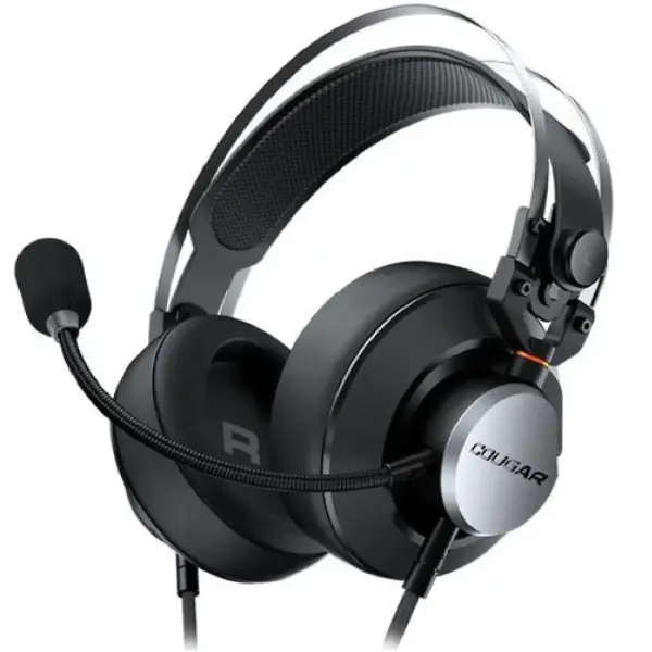 Cougar VM410 Iron – це повнорозмірна ігрова гарнітура, розроблена для глибокого занурення в ігровий процес і комфортного тривалого використання. Закрита конструкція ефективно ізолює зовнішні шуми, дозволяючи зосередитися на звуці та подіях у грі.