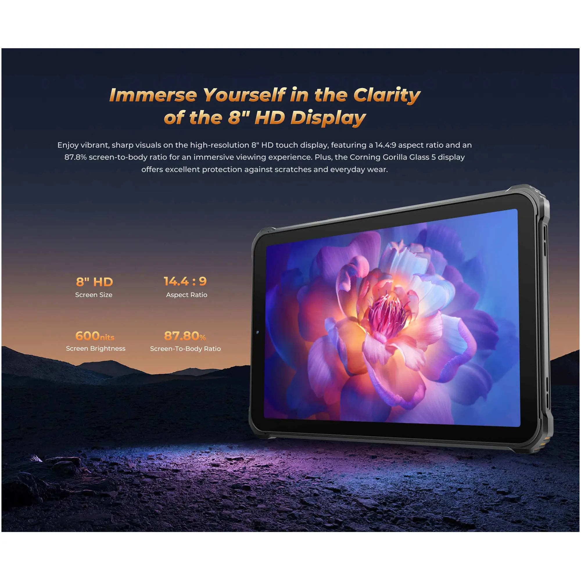 Планшет Oukitel RT3 Pro 4/128GB Black (RT3pro_Black) — це захищений пристрій, розроблений для роботи в складних умовах та активного використання поза приміщенням. Міцний корпус із сертифікаціями IP68, IP69K та MIL-STD-810H забезпечує стійкість до ударів, пилу, вологи й екстремальних температур. Завдяки цьому планшет підходить для будівельників, технічних спеціалістів, туристів та всіх, кому потрібен надійний інструмент у польових умовах. Компактний 8-дюймовий дисплей із роздільною здатністю HD+ добре читається на сонці та зручний для роботи з картами, документами й застосунками.