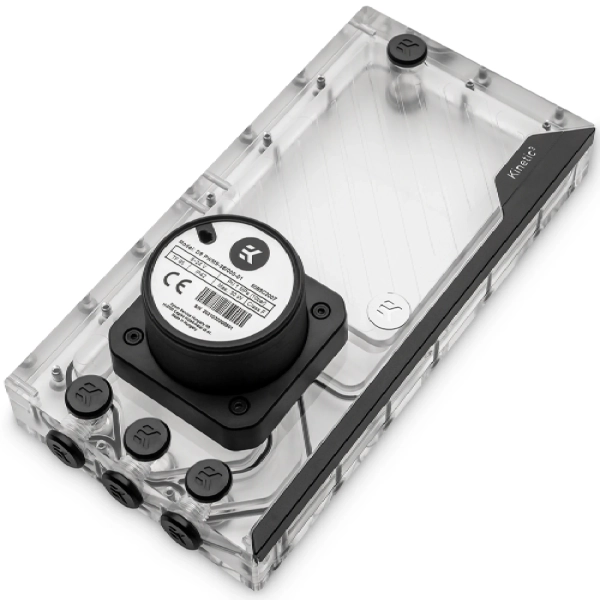 EKWB EK-Quantum Kinetic FLT 240 D5 PWM D-RGB Plexi (арт. 3831109880722) — це комбінований блок «резервуар + насос» форм-фактора Flat (FLT), створений для гнучкої інтеграції в сучасні корпуси з акцентом на естетиці та гідравлічній ефективності. Плоска прямокутна акрилова (Plexi) колба з масивною лицьовою пластиною перетворює його на архітектурний елемент вашого складання, а не просто функціональний вузол. Така площинна конструкція полегшує монтаж на радіаторні кронштейни, шпильки за материнською платою, поряд із фронтальною або бічною панеллю — там, де циліндричний резервуар розмістити проблематично.