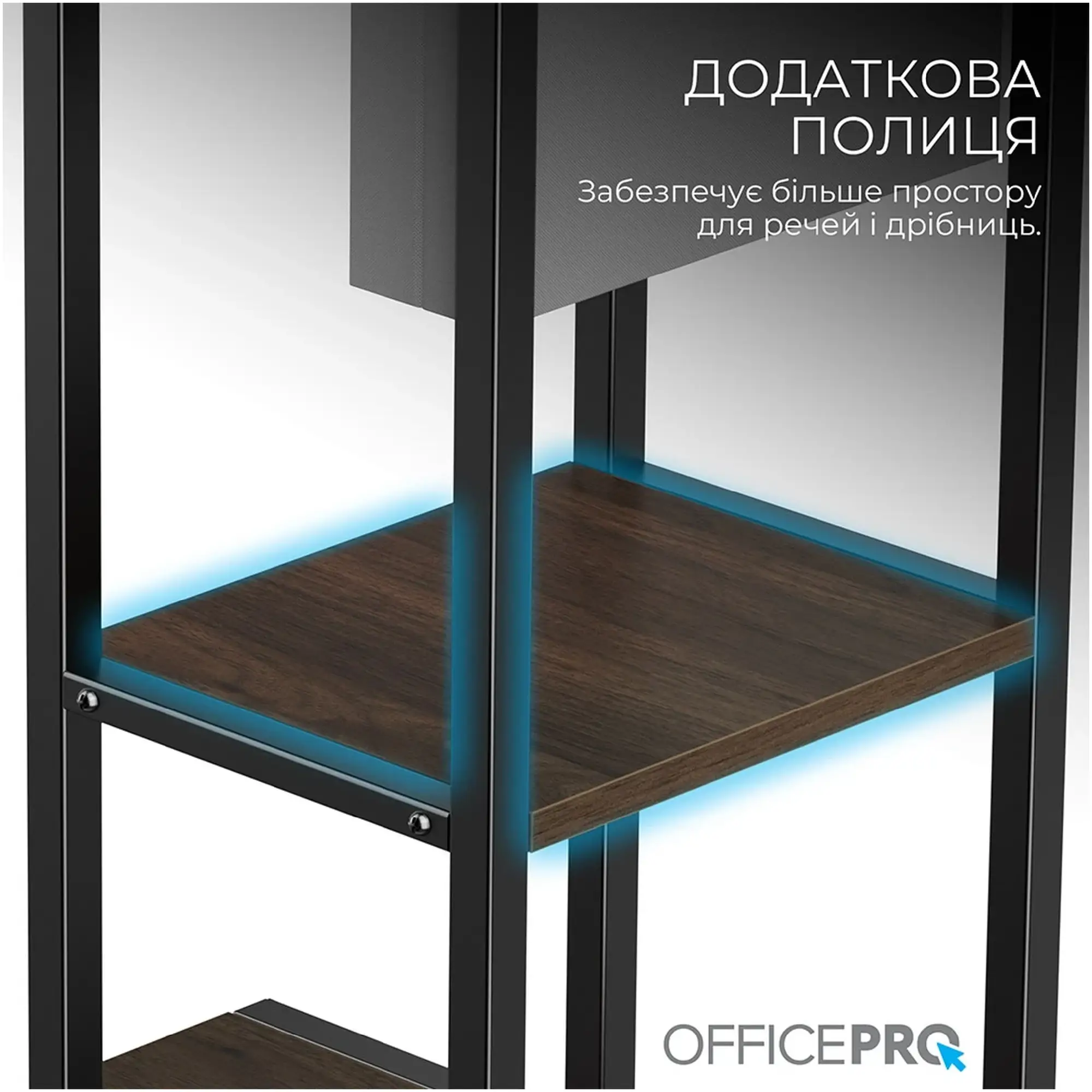 Officepro SD175DW Dark Wood Black також оснащений зручними функціональними доповненнями — лотком для зберігання дрібниць та тканинною кишенею для журналів або документів. Ці елементи дозволяють підтримувати порядок та забезпечують швидкий доступ до потрібних речей, створюючи навколо відчуття організованого простору.