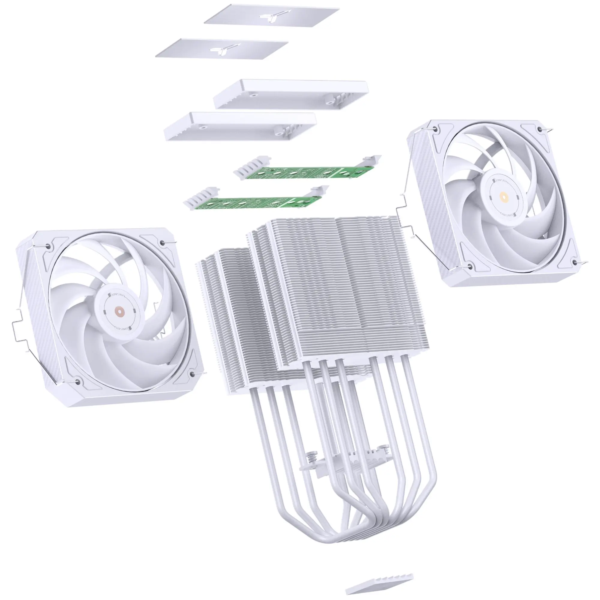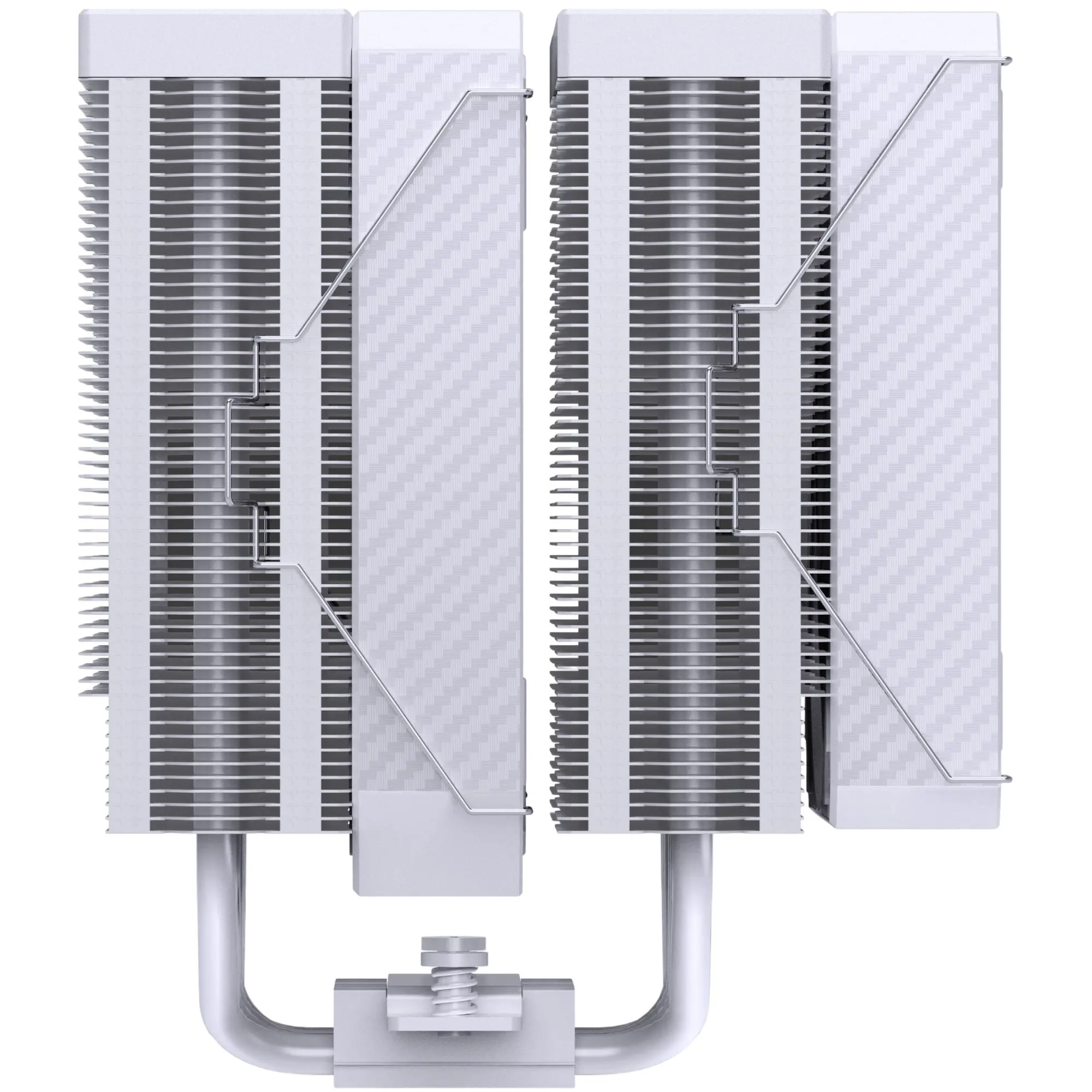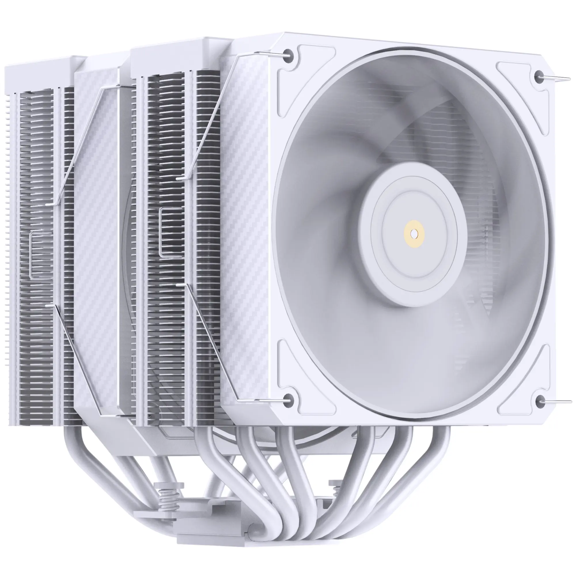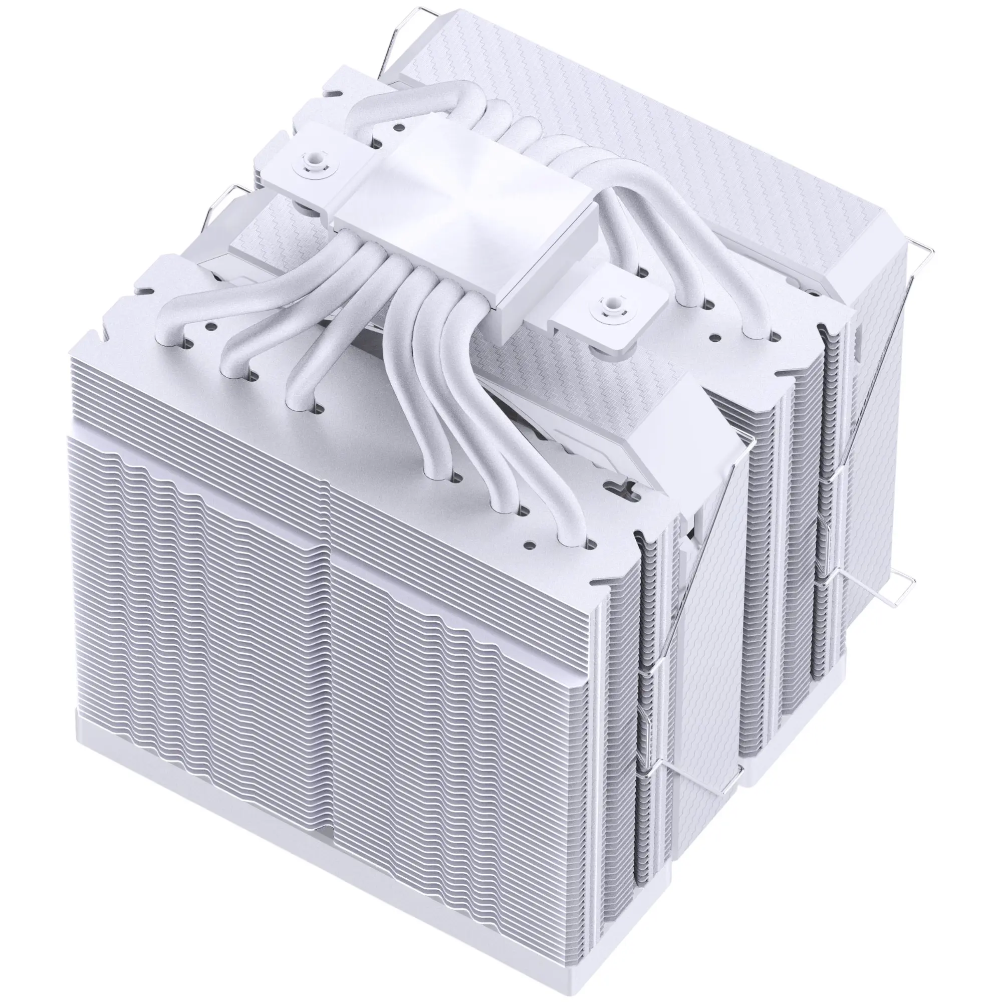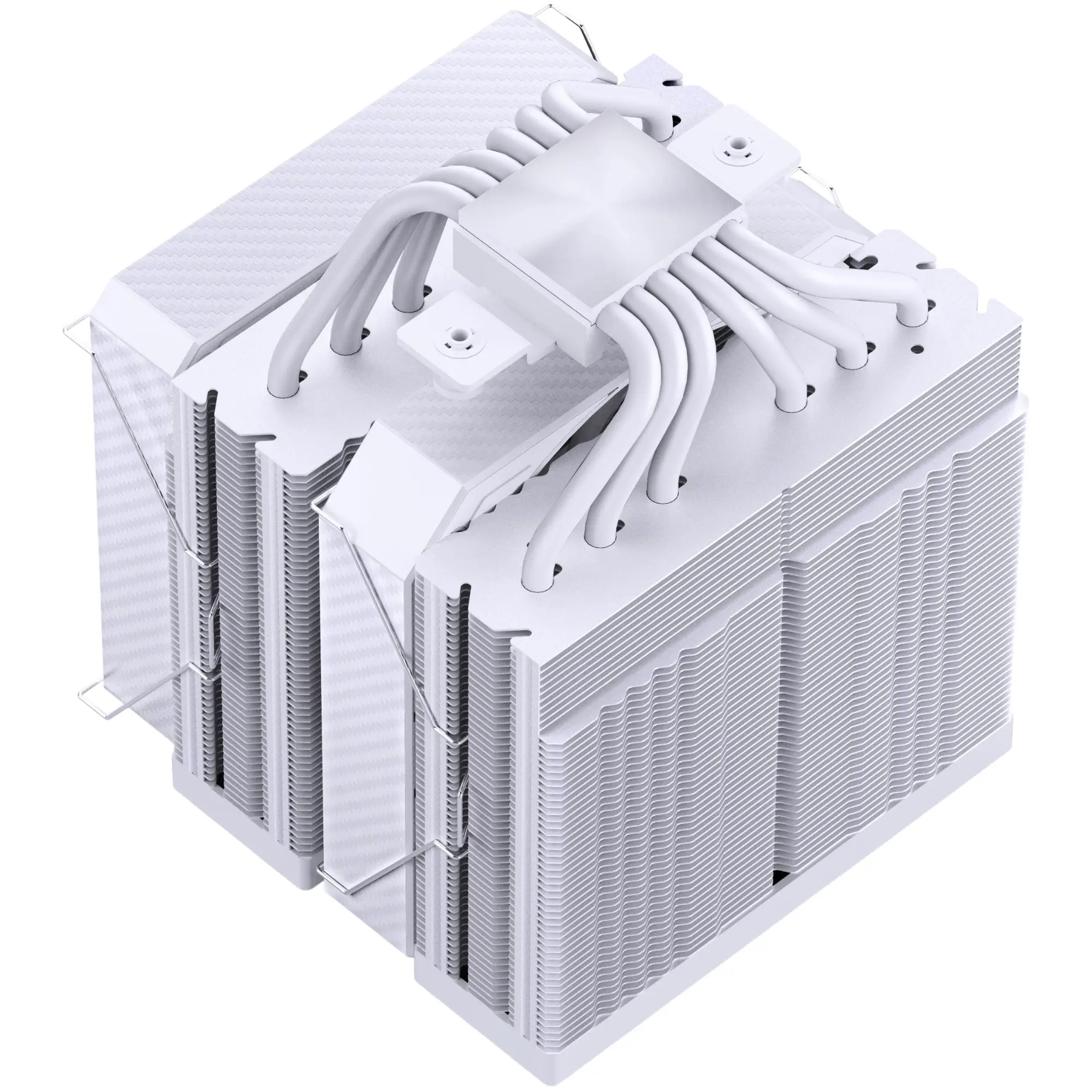 Jonsbo HX6280 White — це потужний баштовий процесорний кулер, створений для ефективного охолодження сучасних багатоядерних процесорів. Він оснащений масивним алюмінієвим радіатором із щільним оребренням та шістьма високопродуктивними тепловими трубками, які швидко відводять тепло від основи до верхньої частини радіатора. Завдяки такій конструкції кулер здатний забезпечувати стабільну роботу процесора навіть за високих навантажень та під час розгону. Білий дизайн робить його привабливим вибором для систем зі світлим оформленням.