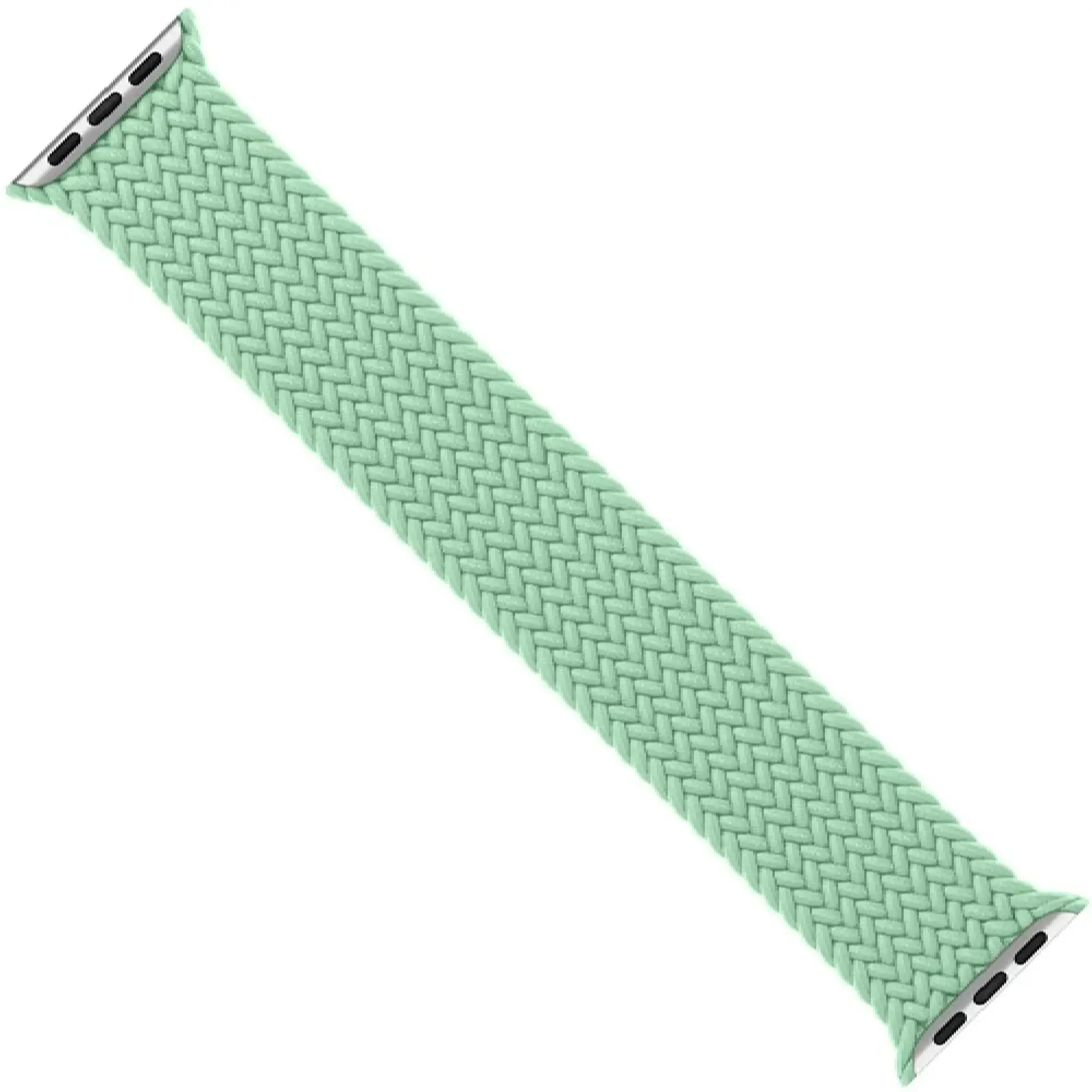 Матеріал браслета дихаючий, стійкий до вологи та поту, завдяки чому він підходить для активних тренувань і щоденного використання. Плетена структура зберігає форму та насичений м’ятний відтінок навіть за регулярної експлуатації. Важливо, що ремінець легкий і майже не відчувається на руці, що робить його особливо зручним для тих, хто цінує мінімалізм і свободу рухів.