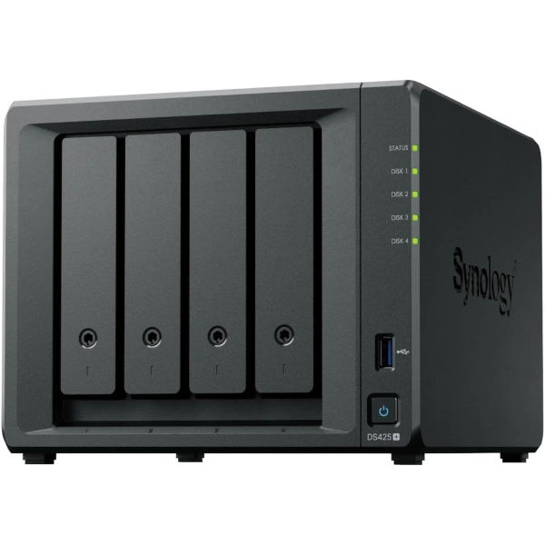 Інтерфейси USB 3.2 розширюють можливості підключення зовнішніх пристроїв і роблять роботу зі сховищем ще більш зручною. Synology DS425+ відрізняється тихою та стабільною роботою, що робить його оптимальним вибором для повсякденного використання вдома або в офісі.