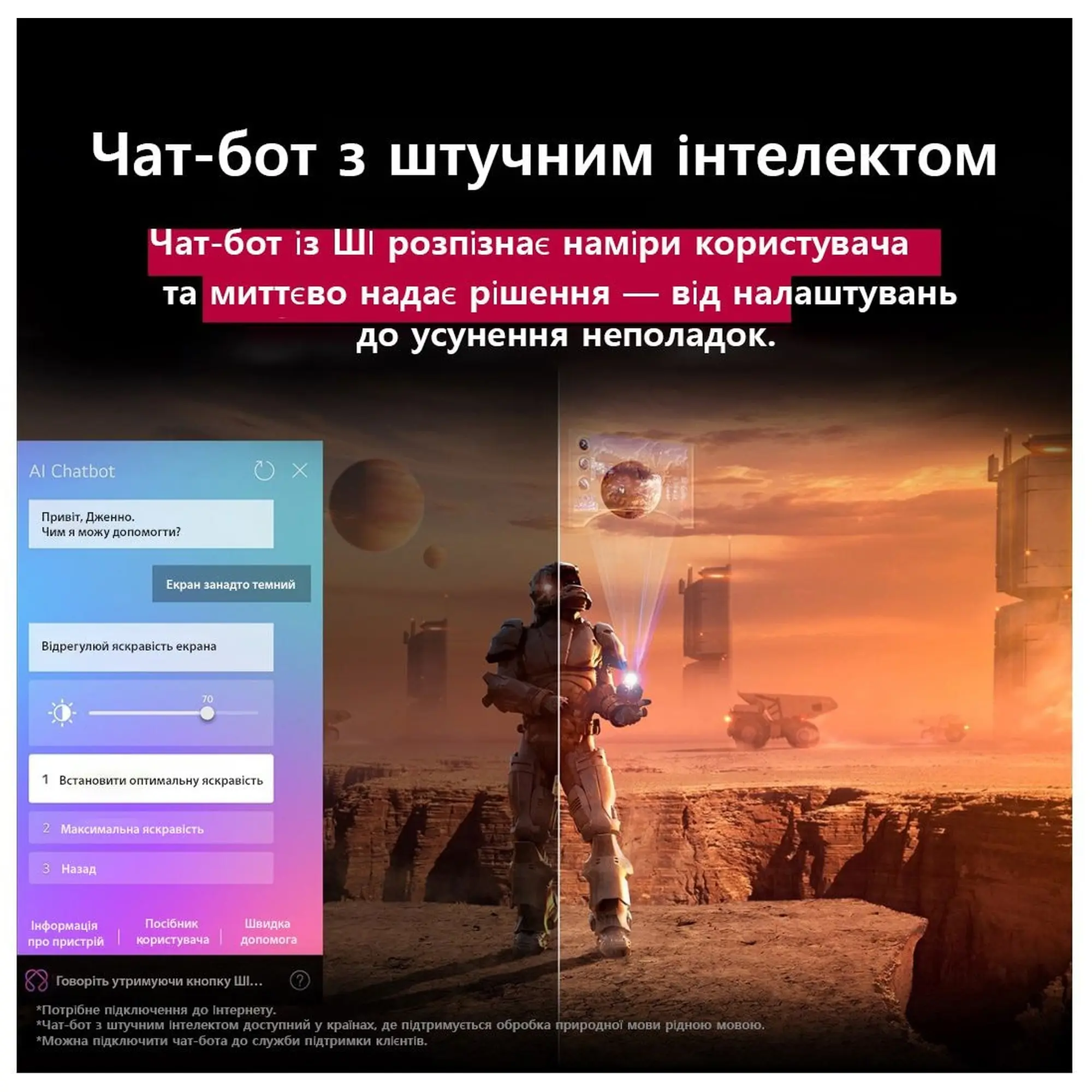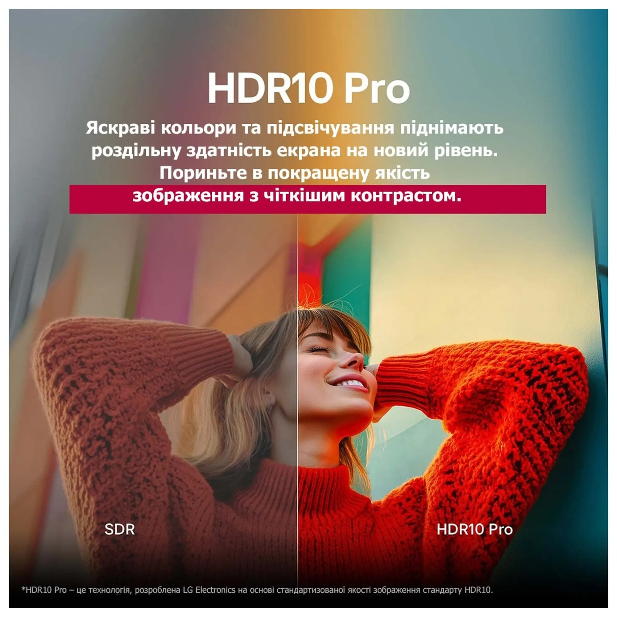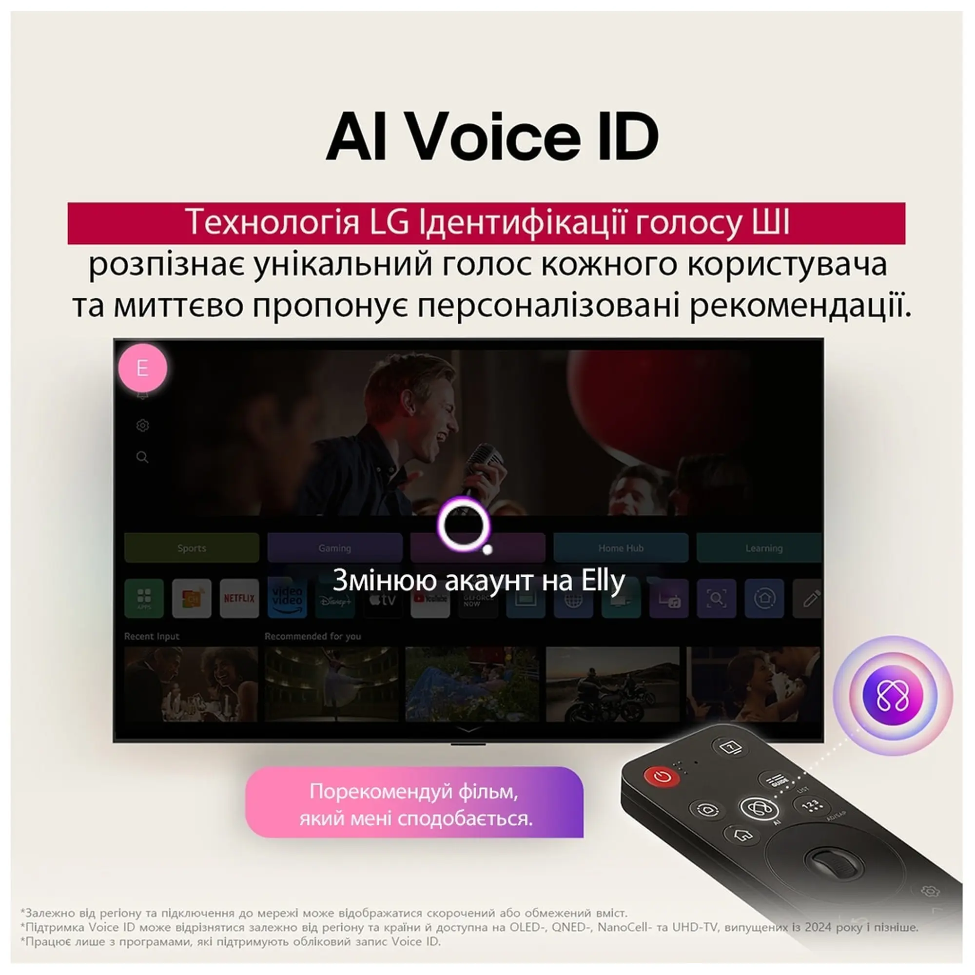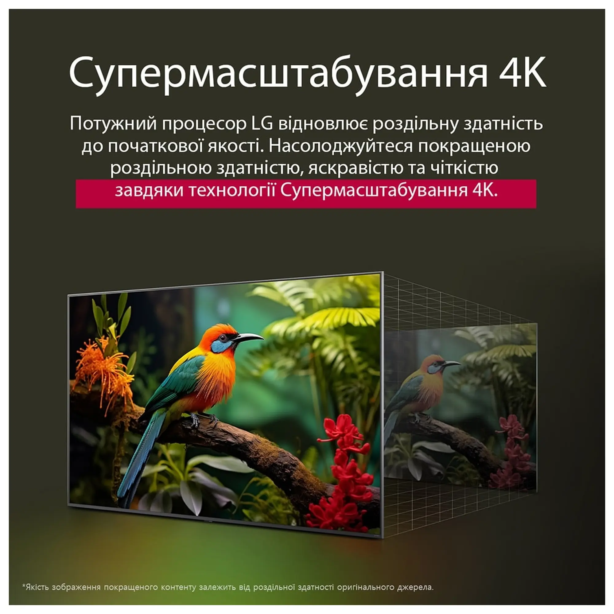 Інтелектуальна система на базі webOS відкриває доступ до численних застосунків, потокових сервісів та онлайн-кінотеатрів. Керування телевізором зручне та інтуїтивне, а завдяки підтримці голосових команд і смарт-пульта взаємодія з пристроєм стає ще простішою. Звук із технологією AI Sound створює ефект об’ємного звучання, наповнюючи кімнату реалістичними аудіодеталями та підсилюючи враження від перегляду.