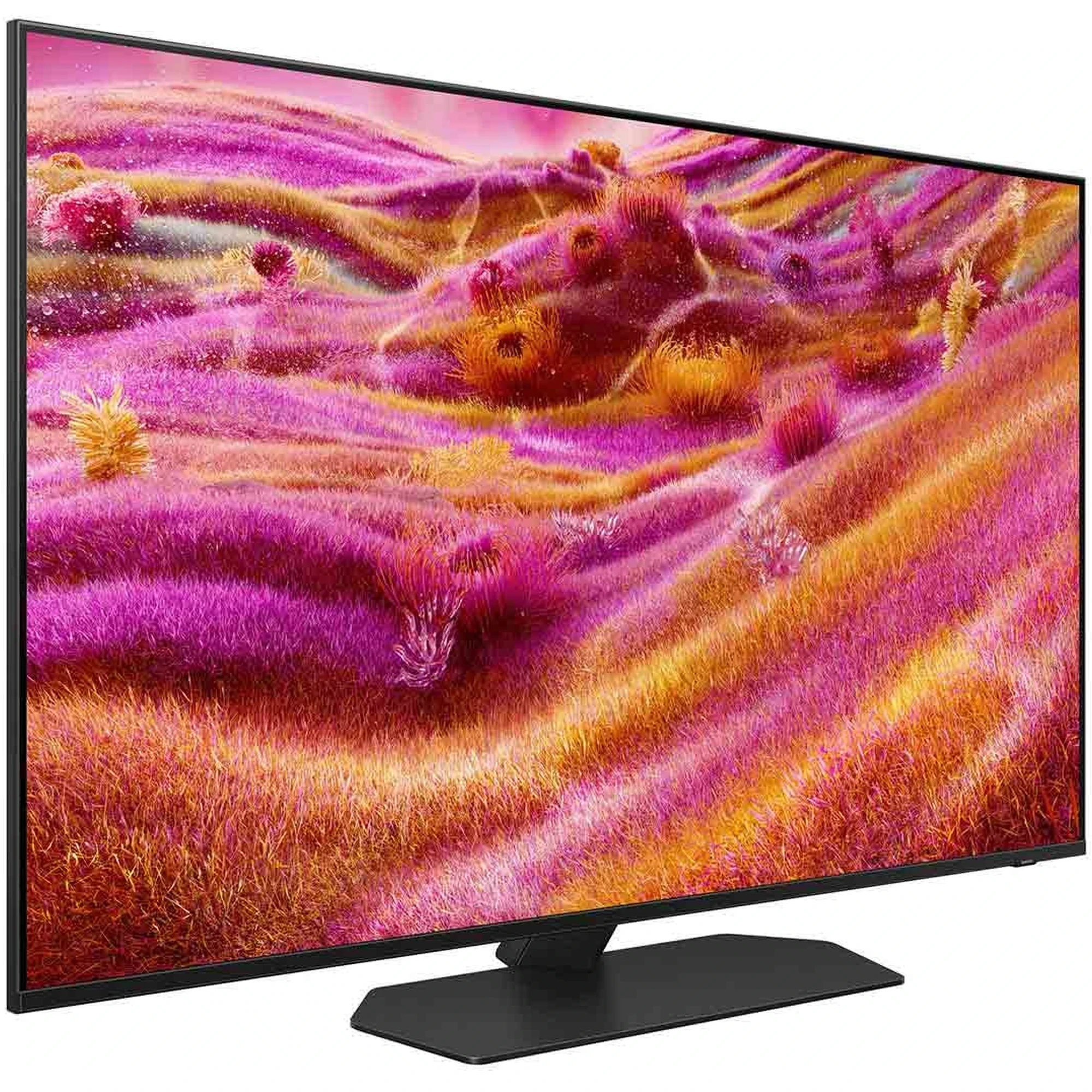 Модель оснащена процесором Neural Quantum Processor 4K, який за допомогою штучного інтелекту аналізує кожен кадр, покращуючи деталізацію, чіткість і насиченість кольорів. Система масштабування AI Upscaling підвищує якість контенту до рівня 4K. Частота оновлення 120 Гц і підтримка FreeSync Premium Pro та ALLM забезпечують плавність руху й миттєву реакцію, роблячи телевізор чудовим вибором для геймерів. Операційна система Tizen забезпечує доступ до потокових сервісів, голосового керування та екосистеми SmartThings.