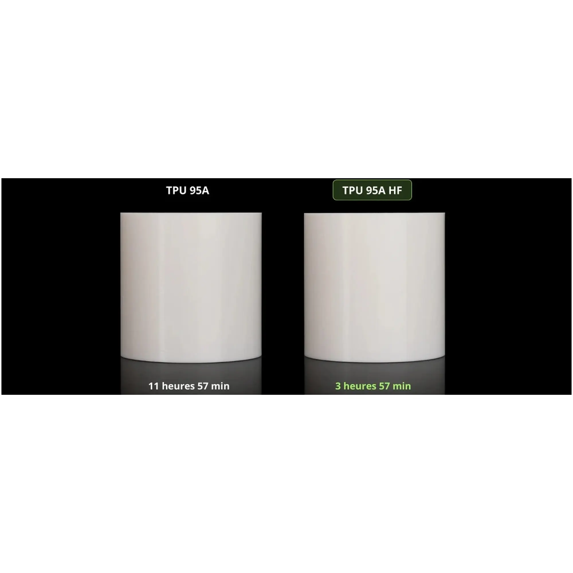 Матеріал вирізняється високою стійкістю до стирання, багаторазових згинань, вібрацій та впливу олив і вологи, тому він ідеально підходить для друку робочих компонентів, що потребують довговічності. TPU 95A чудово підходить для амортизуючих елементів, ущільнювачів, гнучких з’єднань, протекторів, захисних аксесуарів та інших деталей, що зазнають регулярних навантажень. Він легко витримує механічні впливи, не деформується під час повсякденного використання та зберігає свої властивості тривалий час.