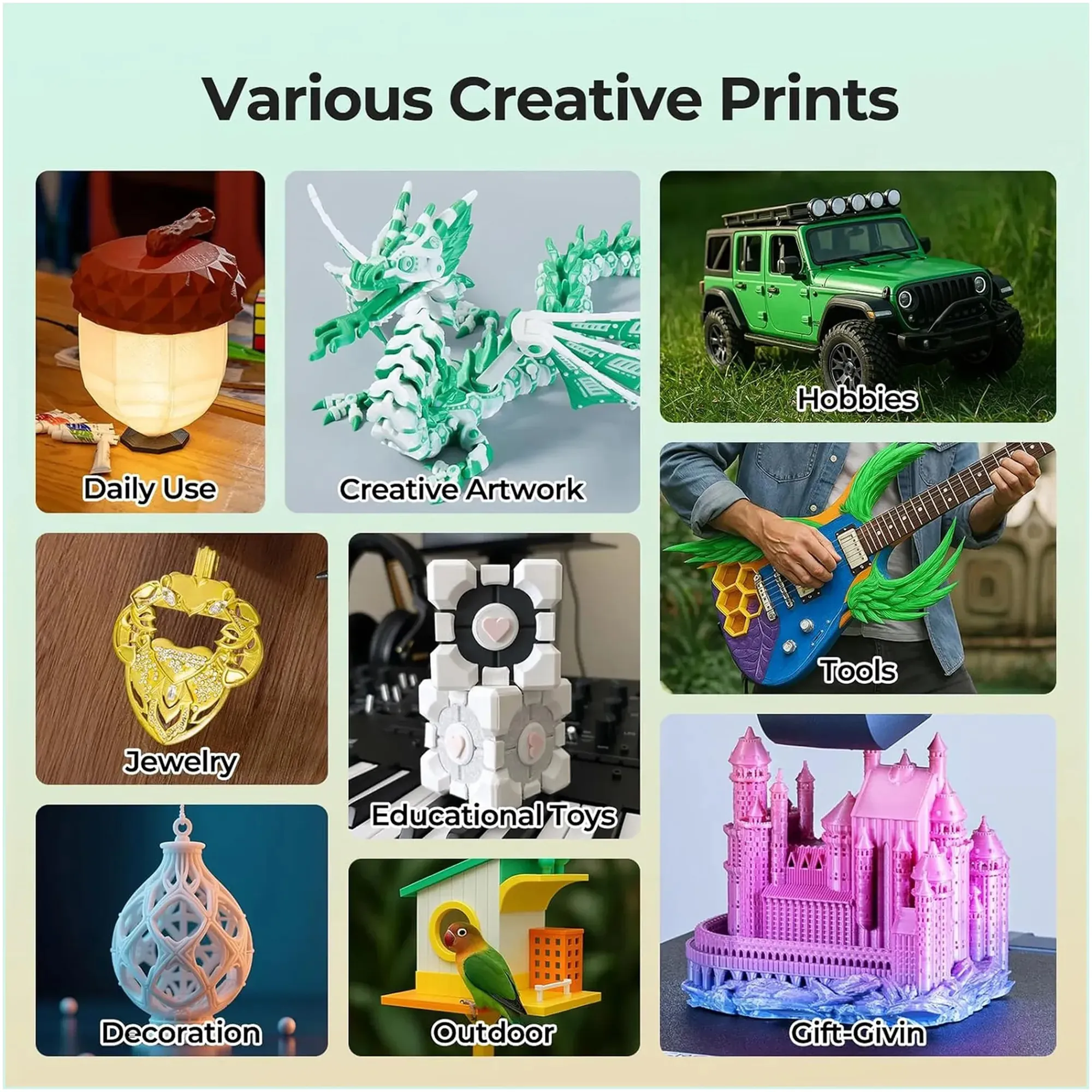 Цей філамент пропонує 10 вишуканих градієнтних відтінків, які плавно переходять один в один прямо в процесі друку. Це ідеальний вибір для створення декоративних моделей, фігурок, сувенірів та подарунків, які не потребують фарбування. Ефект зміни кольору забезпечує глибину, об’єм і вау-ефект - навіть без постобробки.