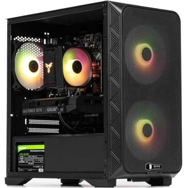 QUBE FLOW Black виконаний у мінімалістичному чорному кольорі, що надає йому елегантного та універсального вигляду. Передня панель корпусу оснащена сітчастою структурою для максимального припливу повітря, забезпечуючи чудове охолодження внутрішніх компонентів. 💨