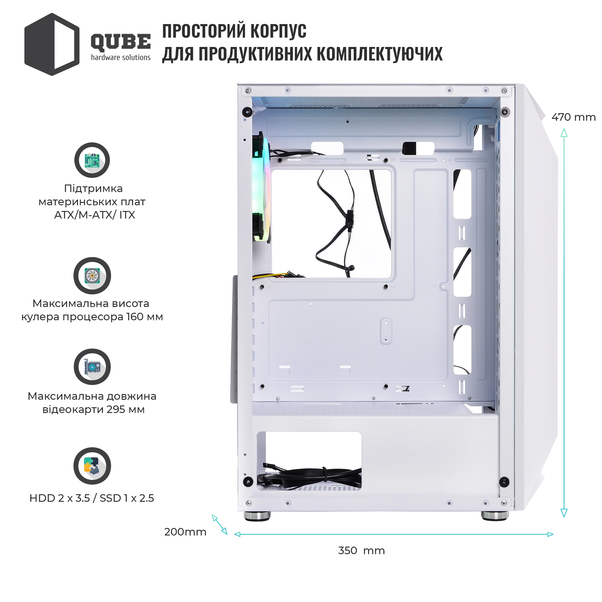 Фірмові корпуси QUBE відрізняються сучасним дизайном, продуманою конструкцією, відмінним функціоналом та дружні до будь-якого користувача, який зважився на самостійну збірку всіх необхідних комплектуючих у готовий персональний комп'ютер.