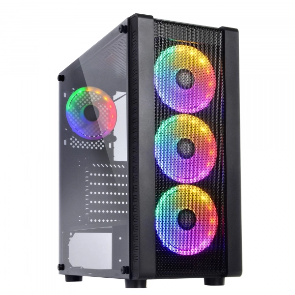 Фронтальная панель черного цвета с перфорацией по всей площади способствует прохождению свежего воздуха и его отличной циркуляции. Верхний съемный противопылевой фильтр на магнитах поможет поддерживать относительную чистоту внутреннего пространства корпуса.
