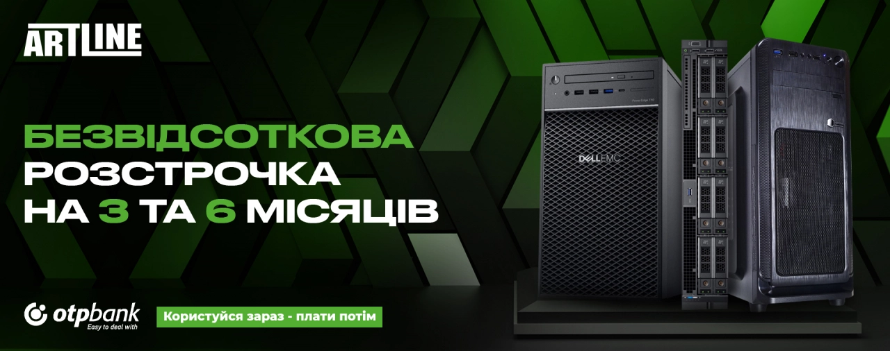 Кожен клієнт може оформити розстрочку в ОТП-банку на 3 або 6 місяців без відсотків на товар вартістю до 200 000 грн. Розстрочка діє на всі сервери (враховуючи ціновий ліміт).