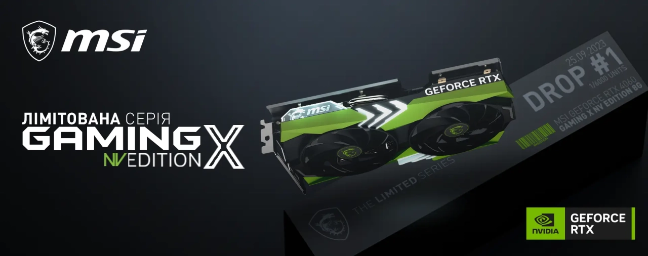 Компанія MSI оголошує перший дроп «лімітованої серії» – відеокарти MSI GeForce RTX™ 4060 GAMING X 8G NV EDITION. Це знаменує народження нової концепції, яка має на меті представити особливі версії найкращих продуктів MSI.